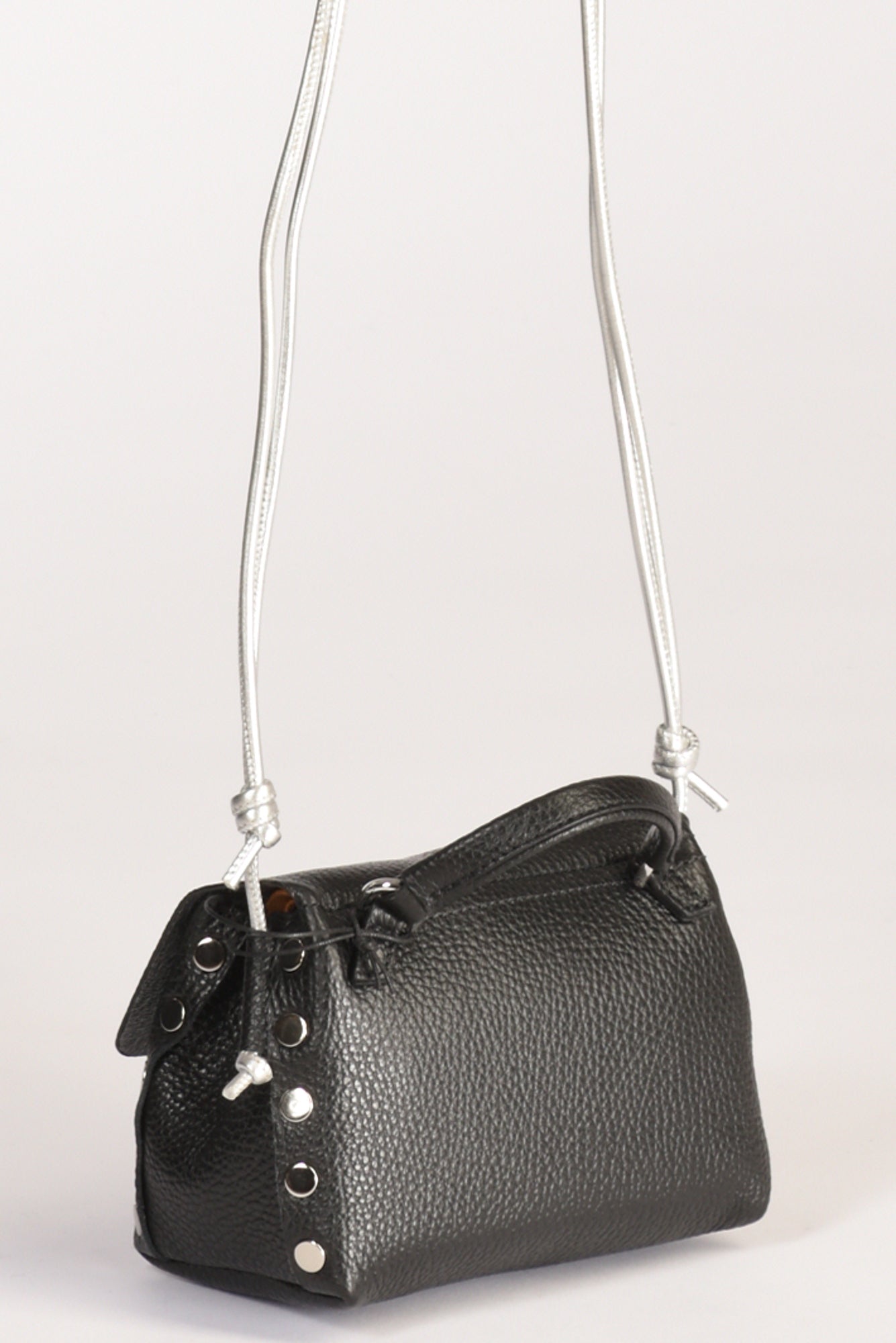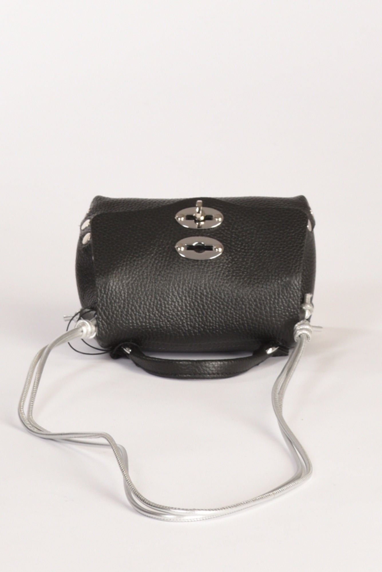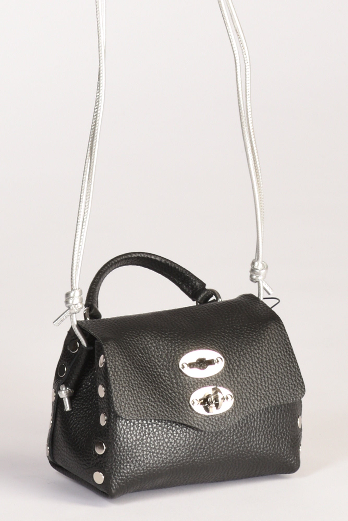 Borsa A Mano Modello Postina, Chiusura A Girello Con Patta Battente, Tracolla Fissa Regolabile, Lavorazione Pelle Martellata, Internamente Presenta Una Tasca Multiuso, Lateralmente Borchie Argentate A Vista, Fondo Senza Piedini,composizione 100 Pelle Bovina, Interno 100 Poliestere, Made In Italy, Misure Cm 16x10x10 Luce Tracolla 43 Cm, Luce Manico 5.