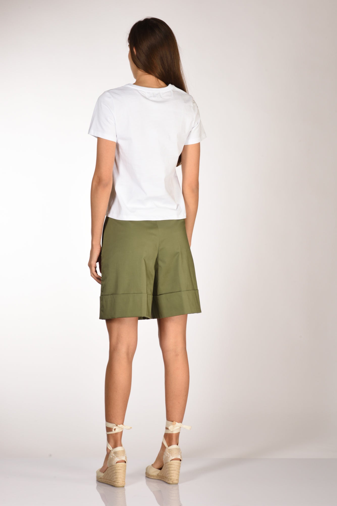La modella in fotografia è alta 180 cm e misura seno 87 cm, vita 56 cm, fianchi 90 cm indossa la seguente taglia 40 o S mentre di jeans 26 e di calzatura 40