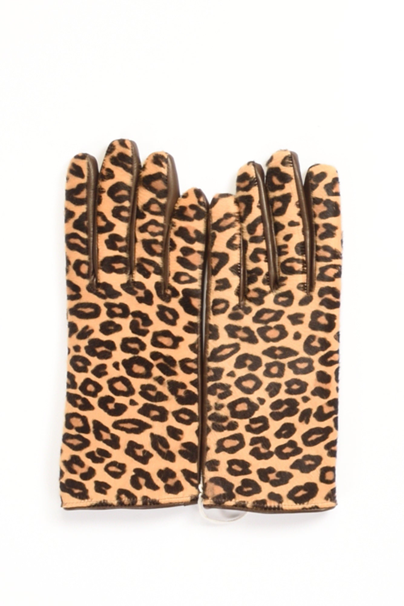 Guanti In Pelle Stampa Animalier Foderati In Cachemire, Made In Italy