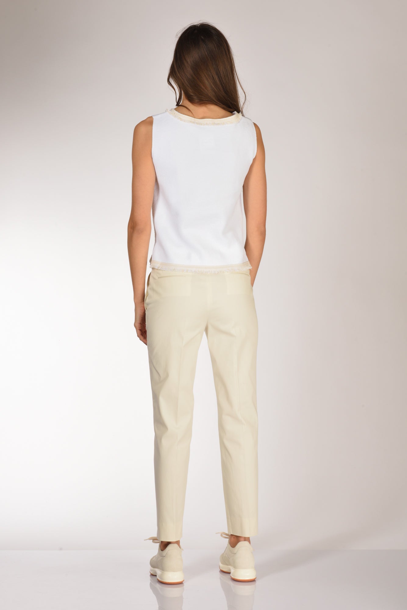 Canotta In Maglia, Collo A Barchetta, Linea Diritta, Collo E Fondo Impreziositi A Contrasto Di Colore Da Passamaneria A Spazzolino, Fondo Spacchi Laterali, Made In Italy, Composizione 76 Cotone, 23 Poliammidica, 1 Elastan