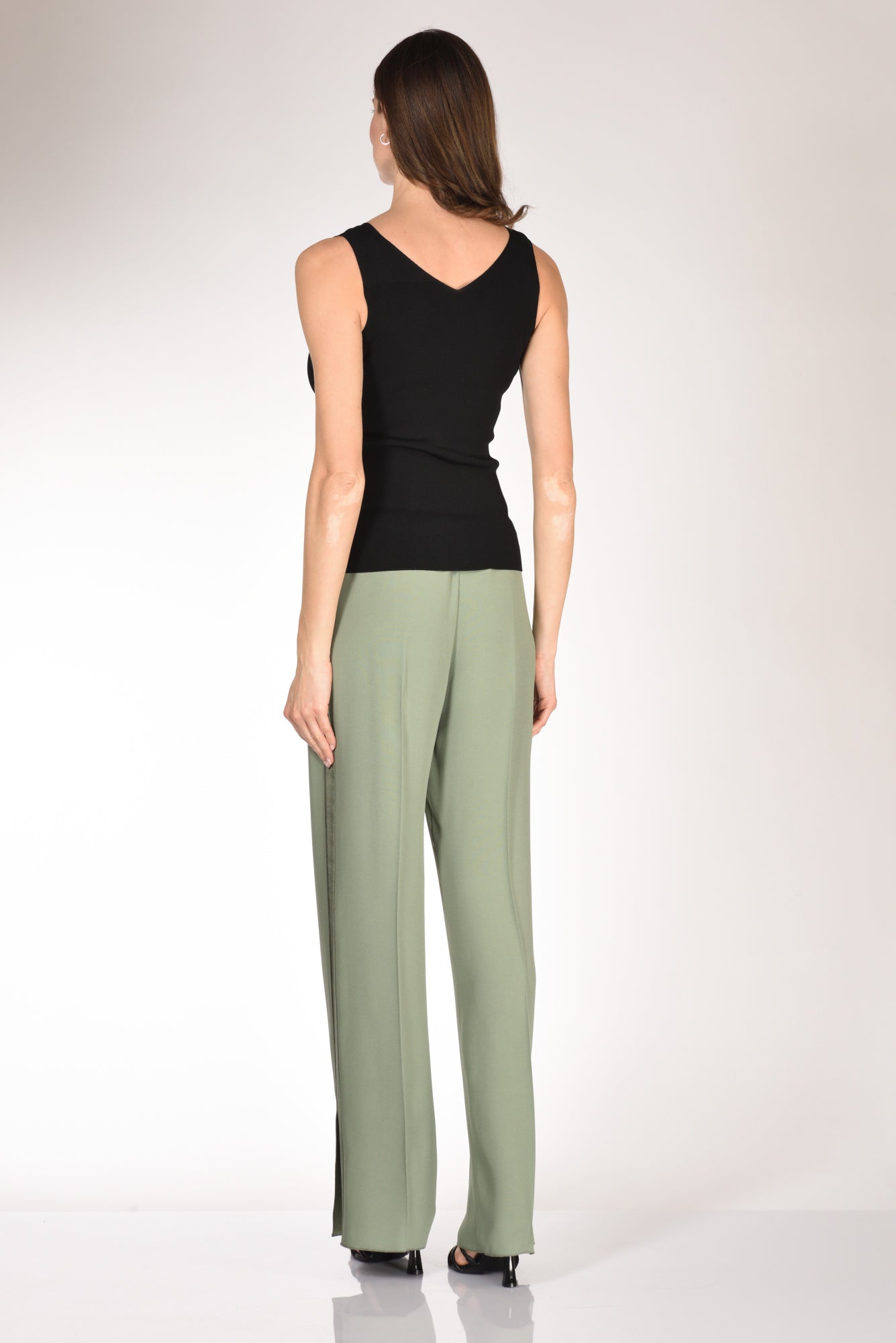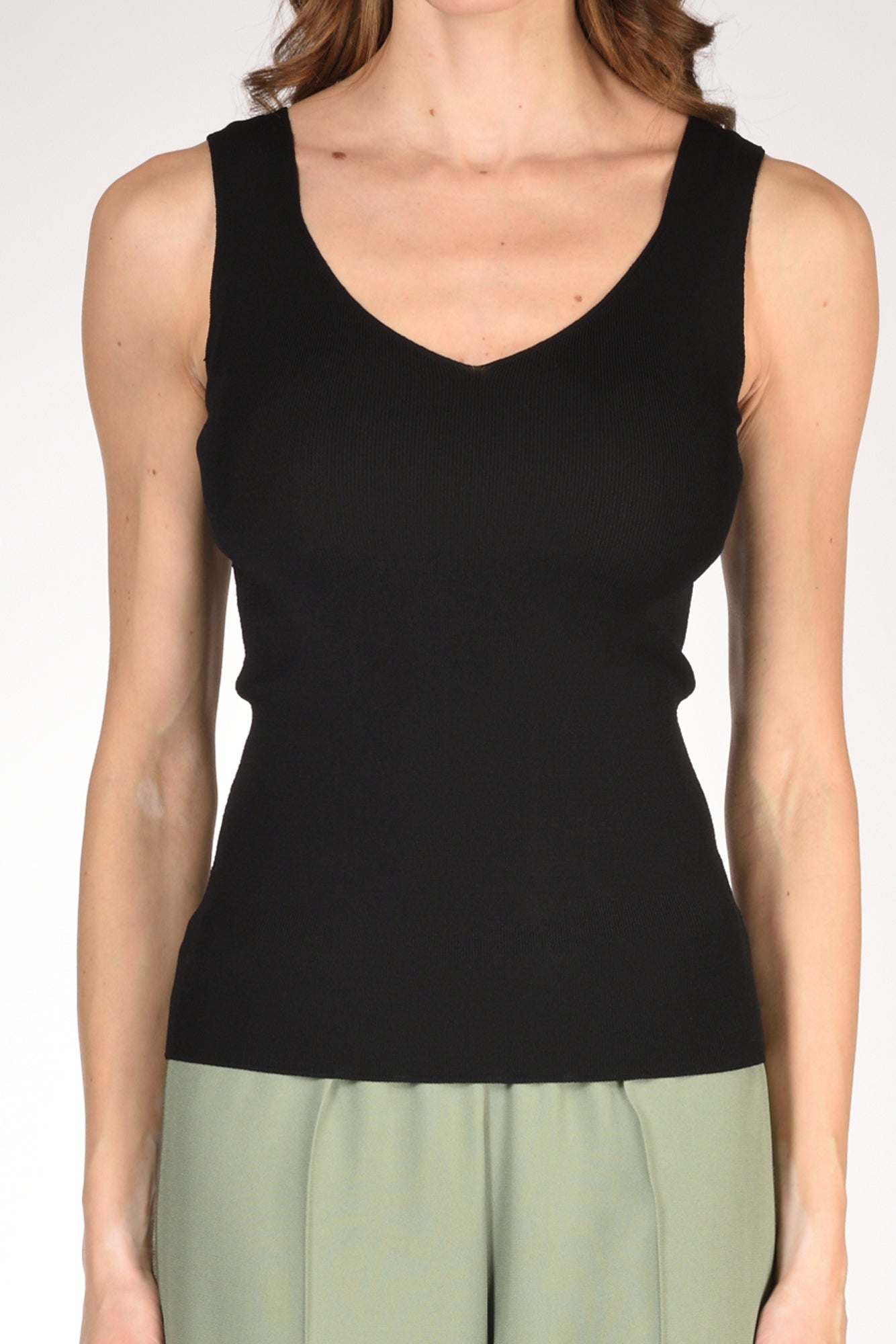 Top Smanicato Con Scollo A V Fronte E Retro, Slim Fit, Made In Italy, Composizione 65 Viscosa 35 Poliammidica