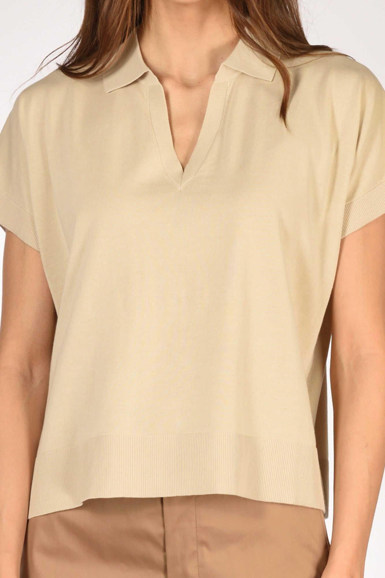 Maglia Boxy Con Colletto, Scollo A V Frontale, Manica Corta Scesa, Vestibilita' Ampia, Composizione 100 Cotone, Made In China