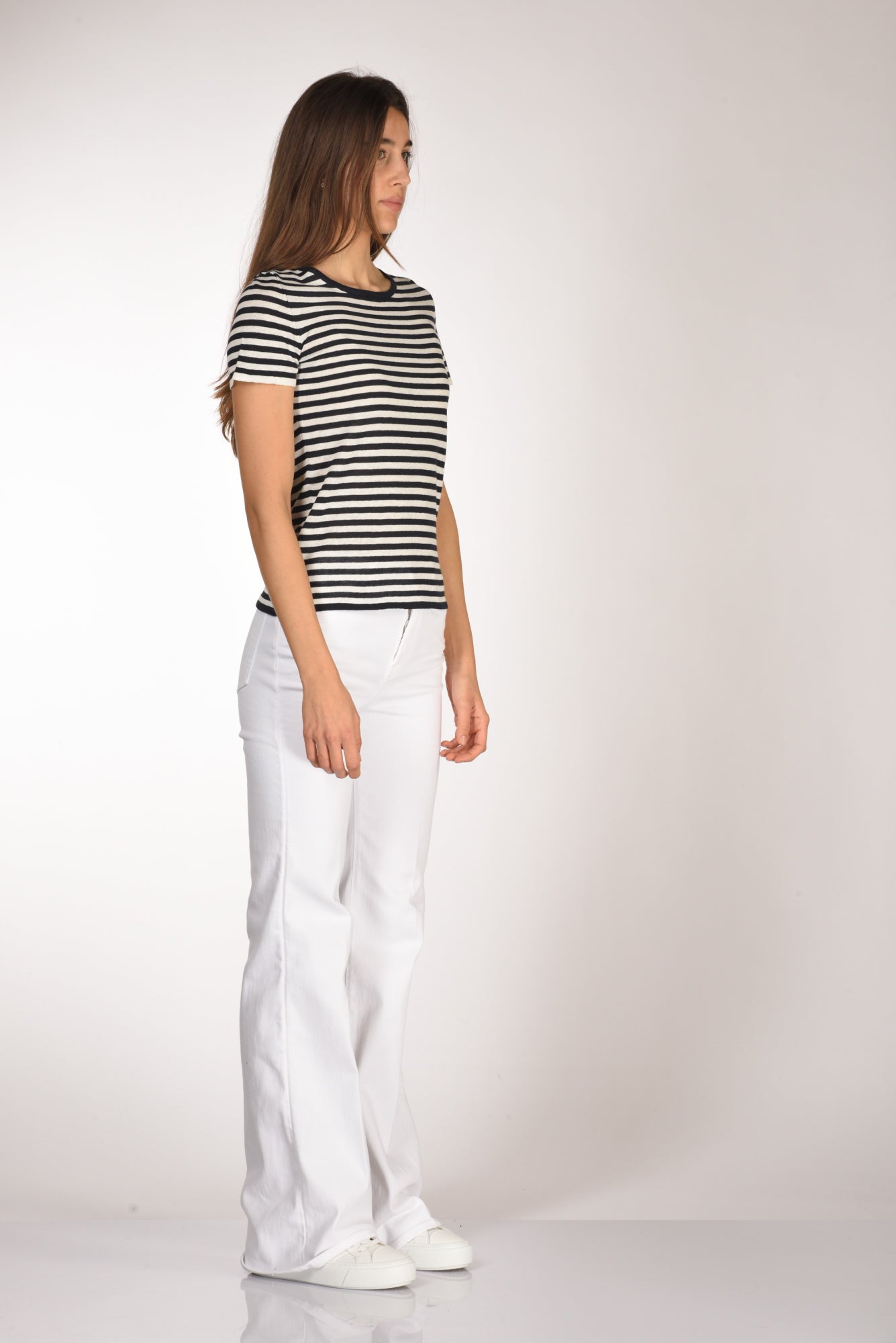 T-shirt Girocollo Rigata, Mezza Manica, Vestibilita' Slim, Made In Italy, Composizione 64 Lino, 36 Cotone