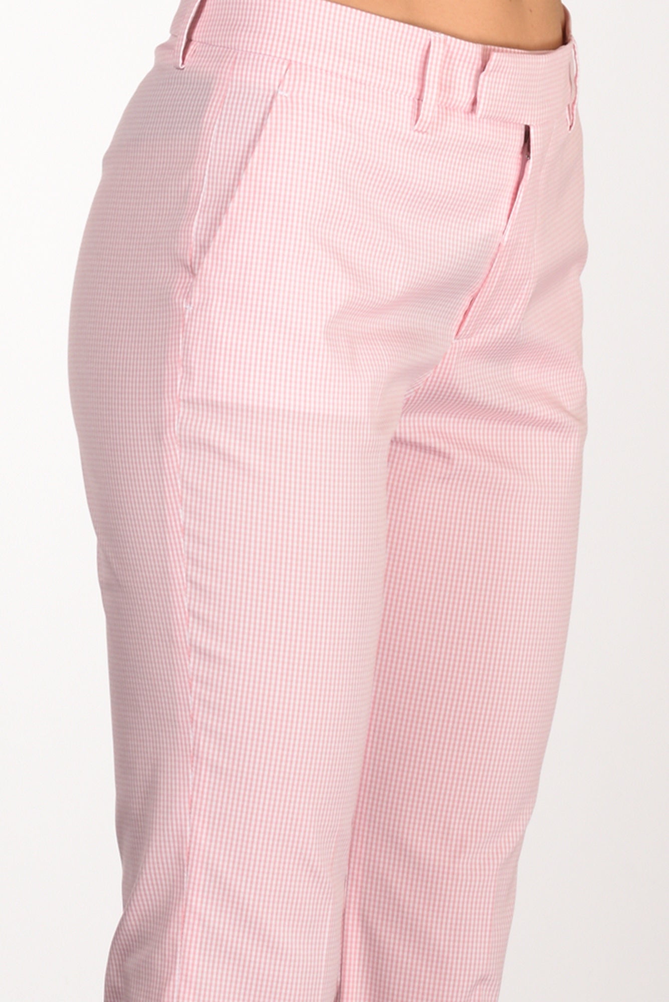 Pantaloni Fondo Trombetta, Stampa Micro Check, Passanti In Vita, Tasche Laterali Inserite, Chiusi Da Zip, Bottone E Gancio Nascosti, Vestibilita' Regular, Composizione 78 Cotone, 17 Poliammide, 5 Elastan, Made In Italy