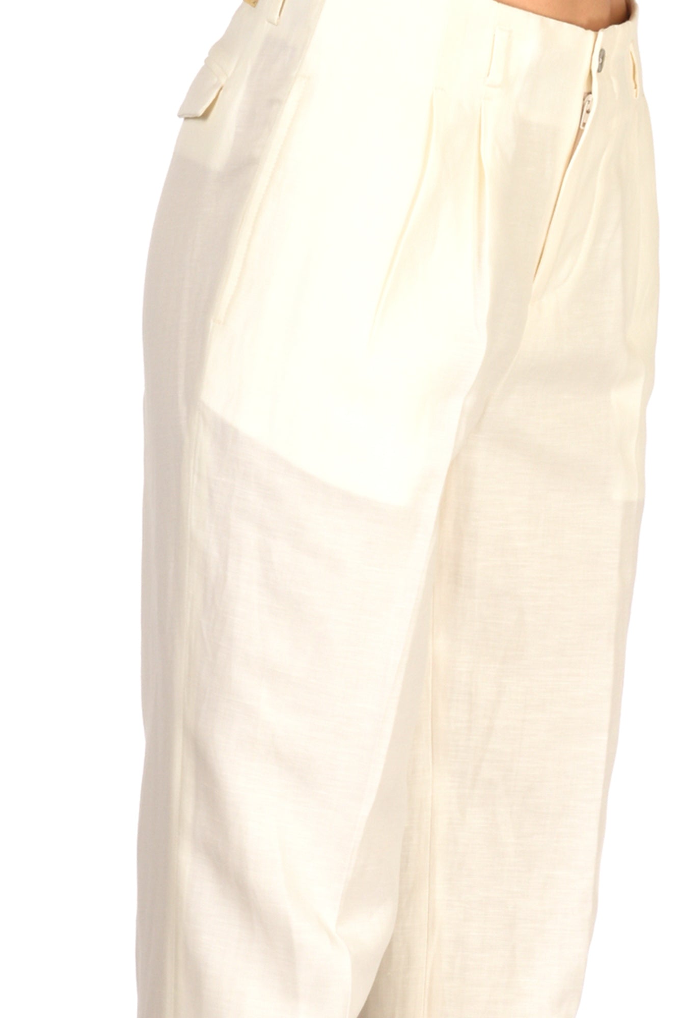 Pantalone A Vita Alta Con Doppia Pences, Passanti, Chiusura Zip Nascosta E Bottone A Vista, Tasche Inserite, Tasche Posteriori Finte Con Patta, Gamba Diritta, Vestibilita' Regular, Made In Italy, Comosizione 56 Lana 44 Lino