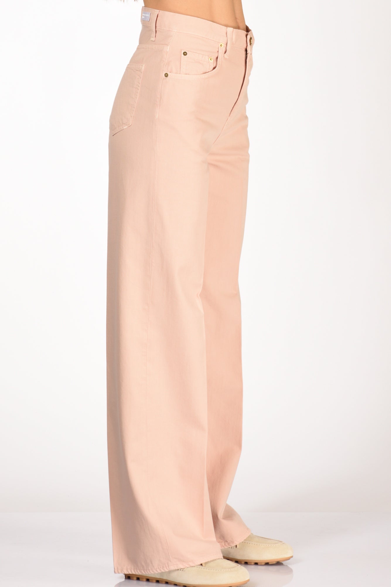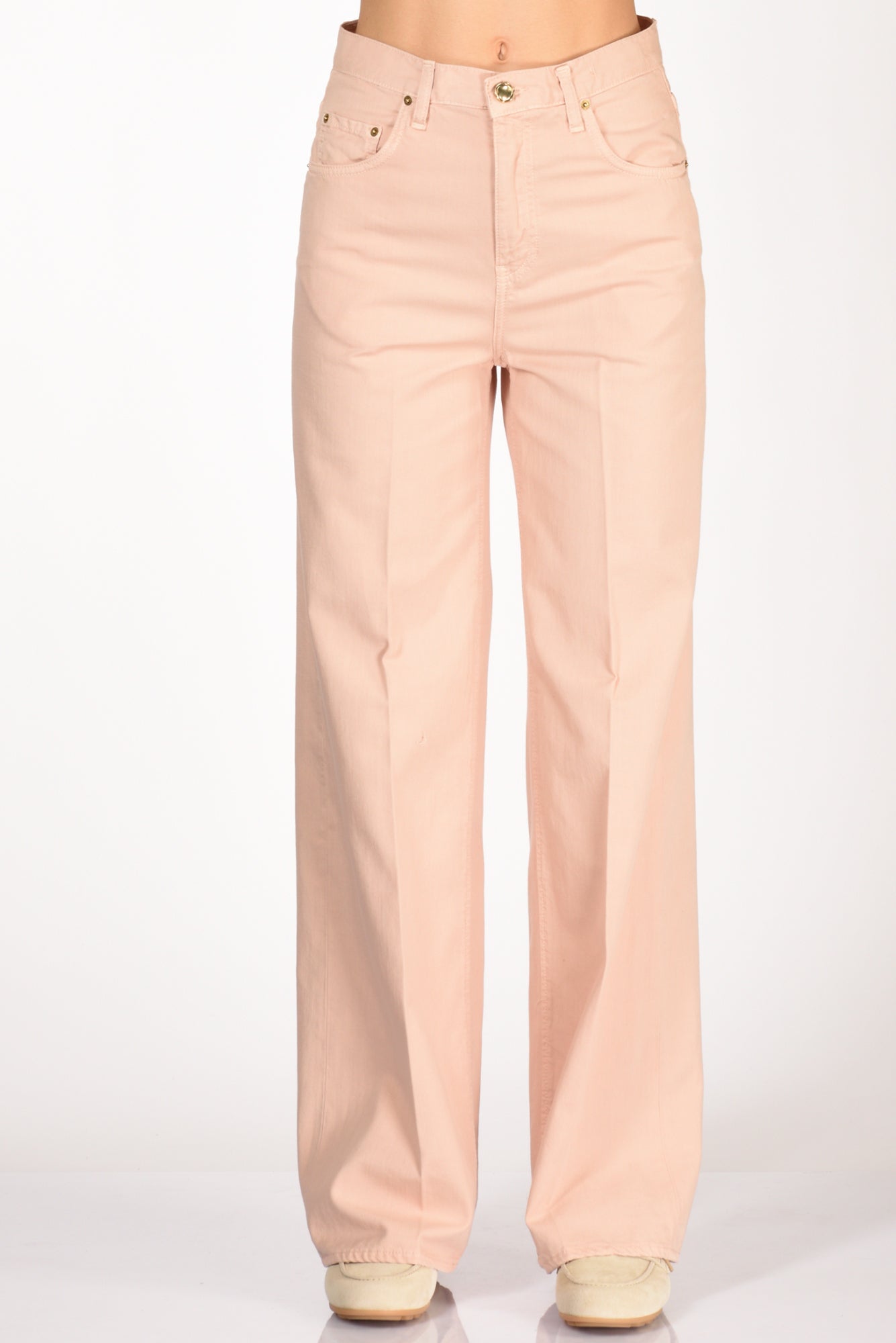 Pantaloni 5 Tasche, Vita Alta, Gamba Larga, Passanti In Vita, Chiusi Da Zip E Bottone Gioiello, Vestibilita' Regular, Composizione 100 Cotone, Made In Italy