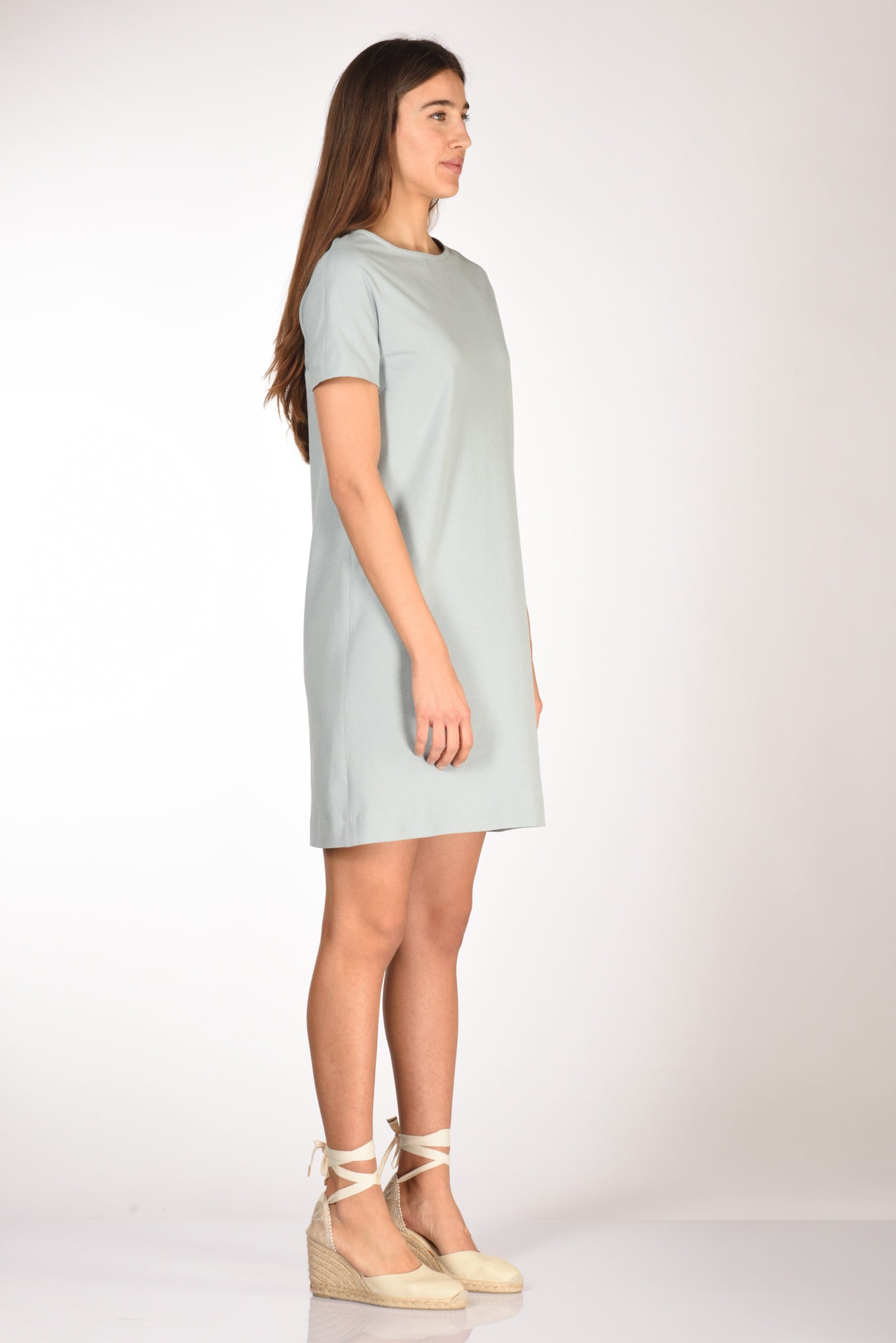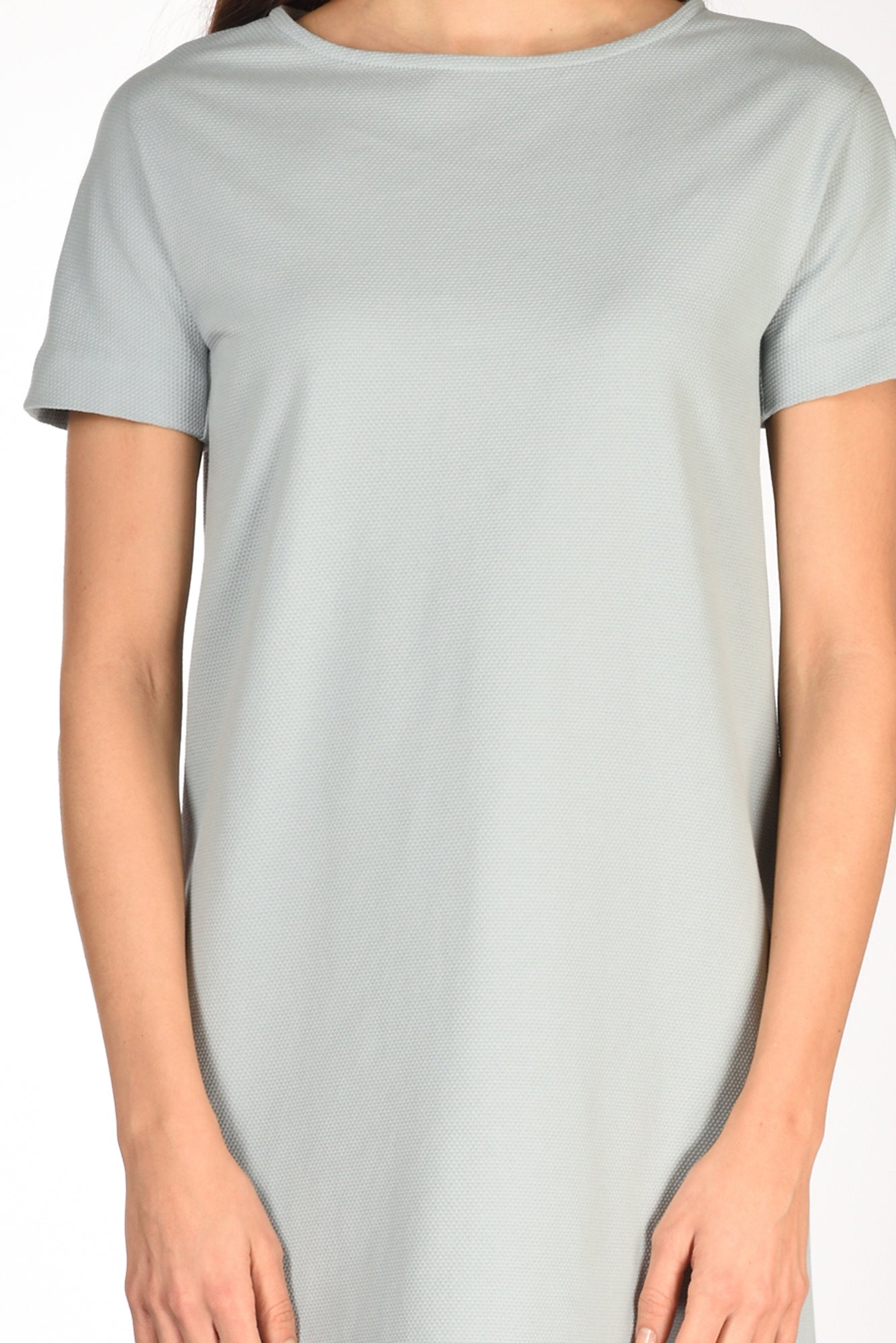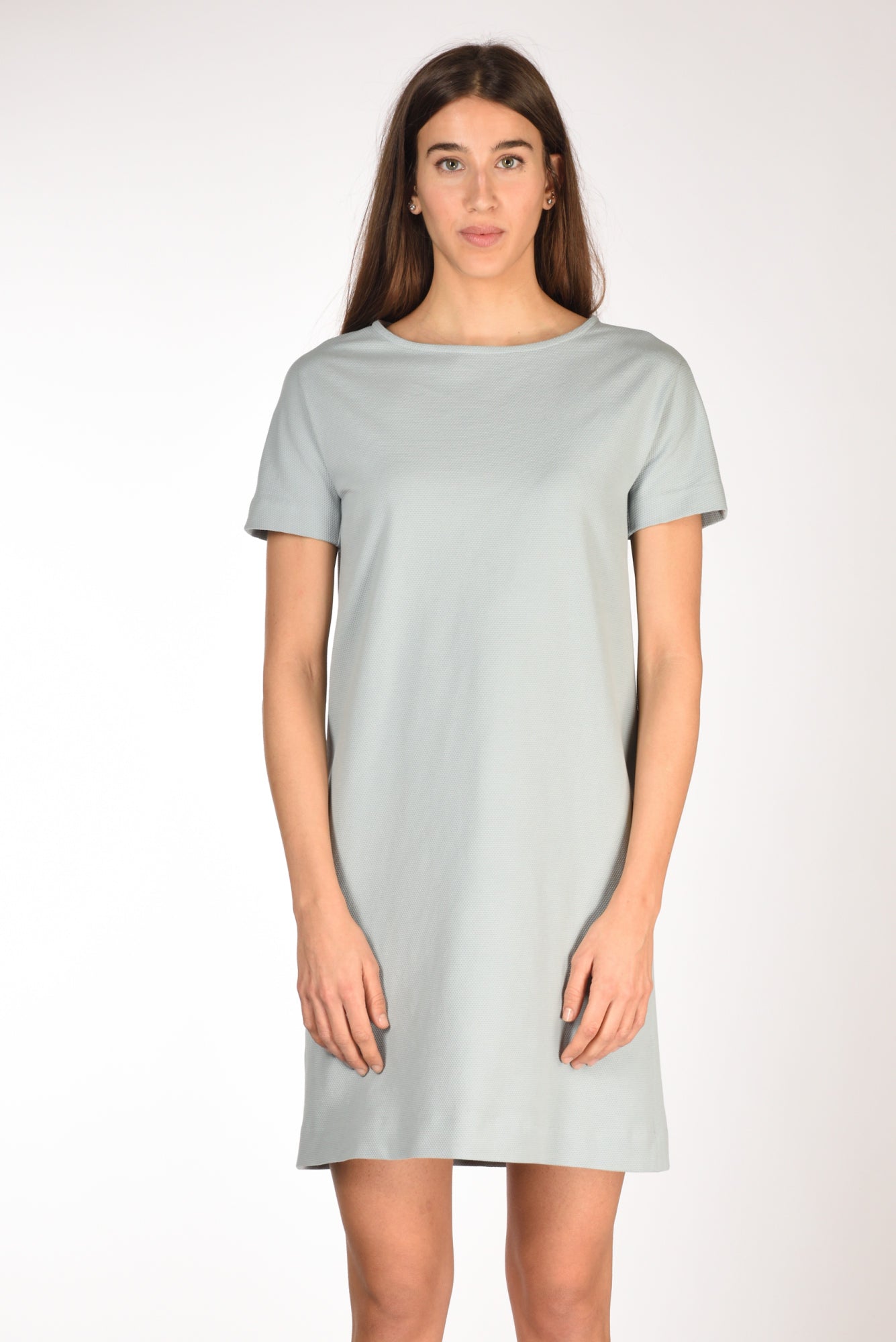 Abito Girocollo Realizzato In Tessuto Oxford, Mezza Manica, Sfoderato, Chiusura Posteriore A Goccia Con Bottone Ed Asola Volante, Linea Diritta, Vestibilita' Regular, Made In Romania, Composizione 97 Cotone, 3 Elastan