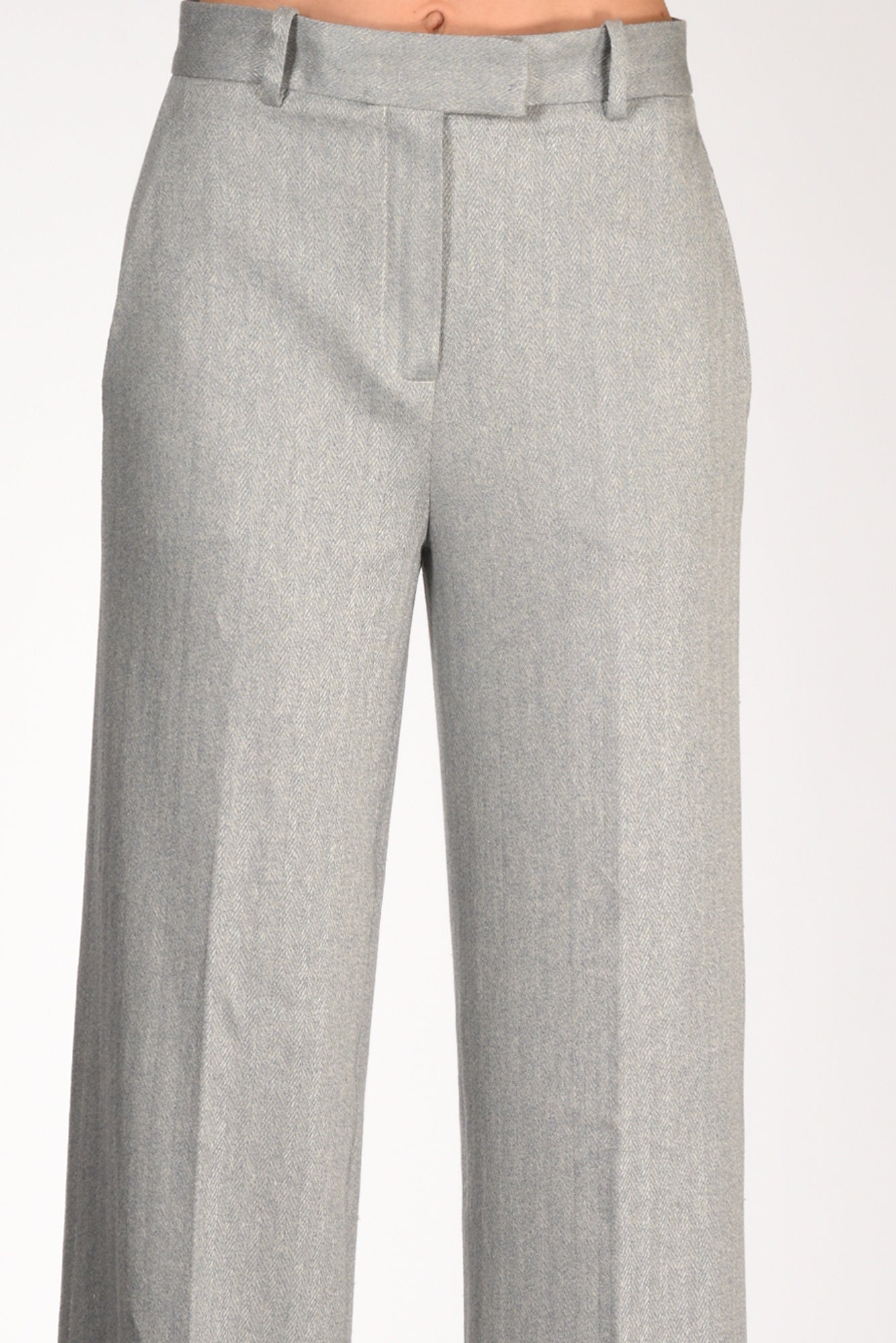 Pantaloni Vita Alta Con Passanti, Gamba Larga, Chiusura Zip E Gancio Metallico Nascosti, Tasche Laterali Alla Francese E Posteriori A Filetto Con Bottone, Vestibilita' Regular, Made In Romania, Composizione 80 Lino, 20 Cotone,