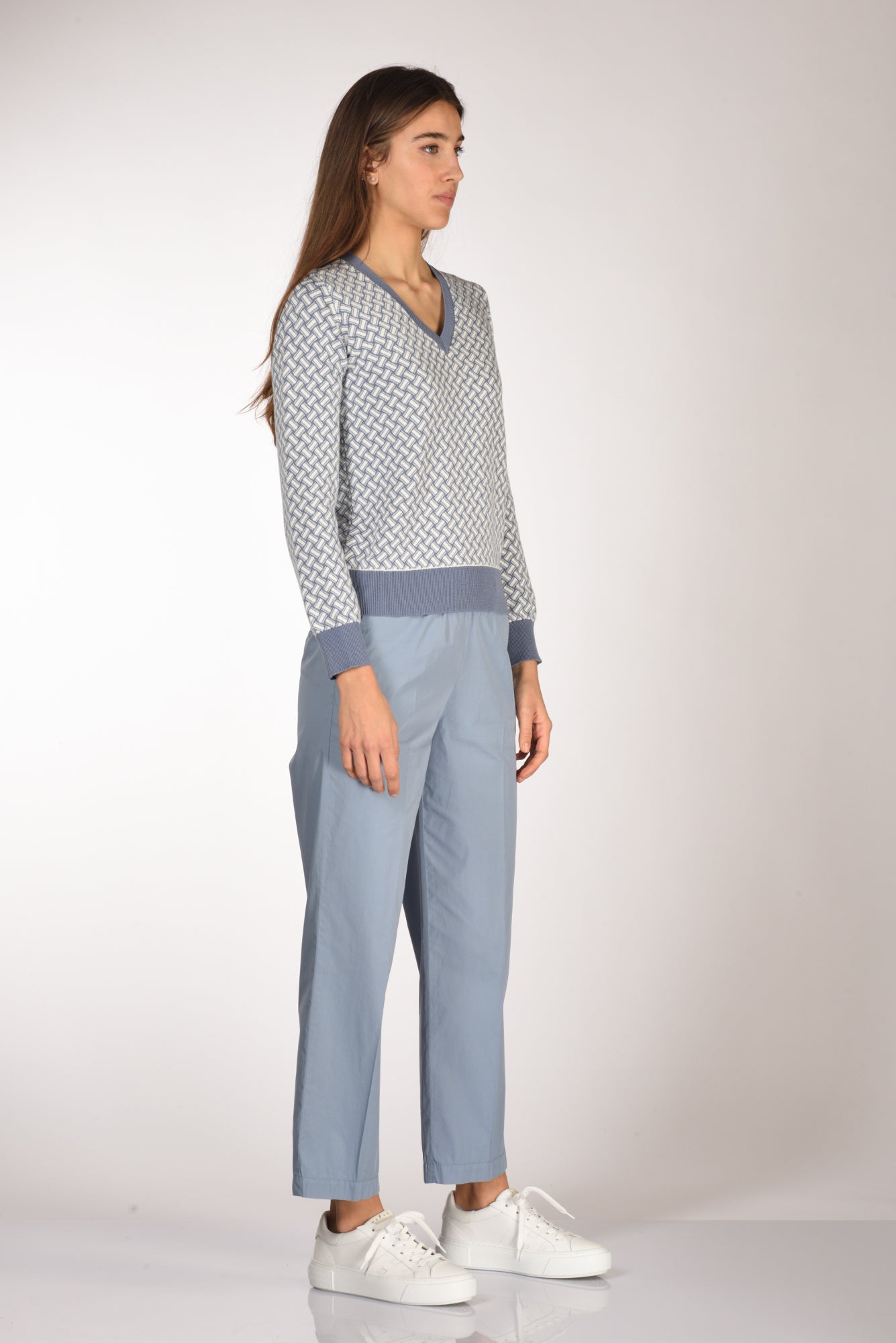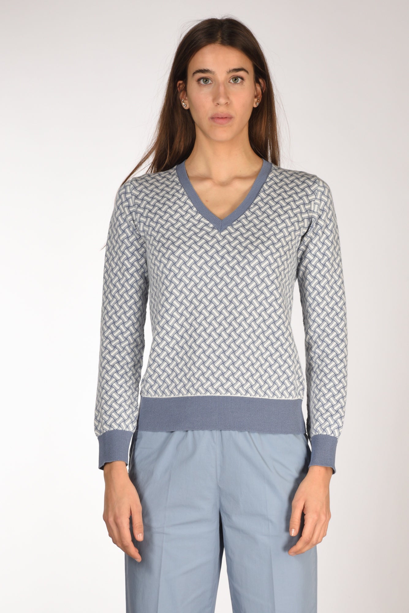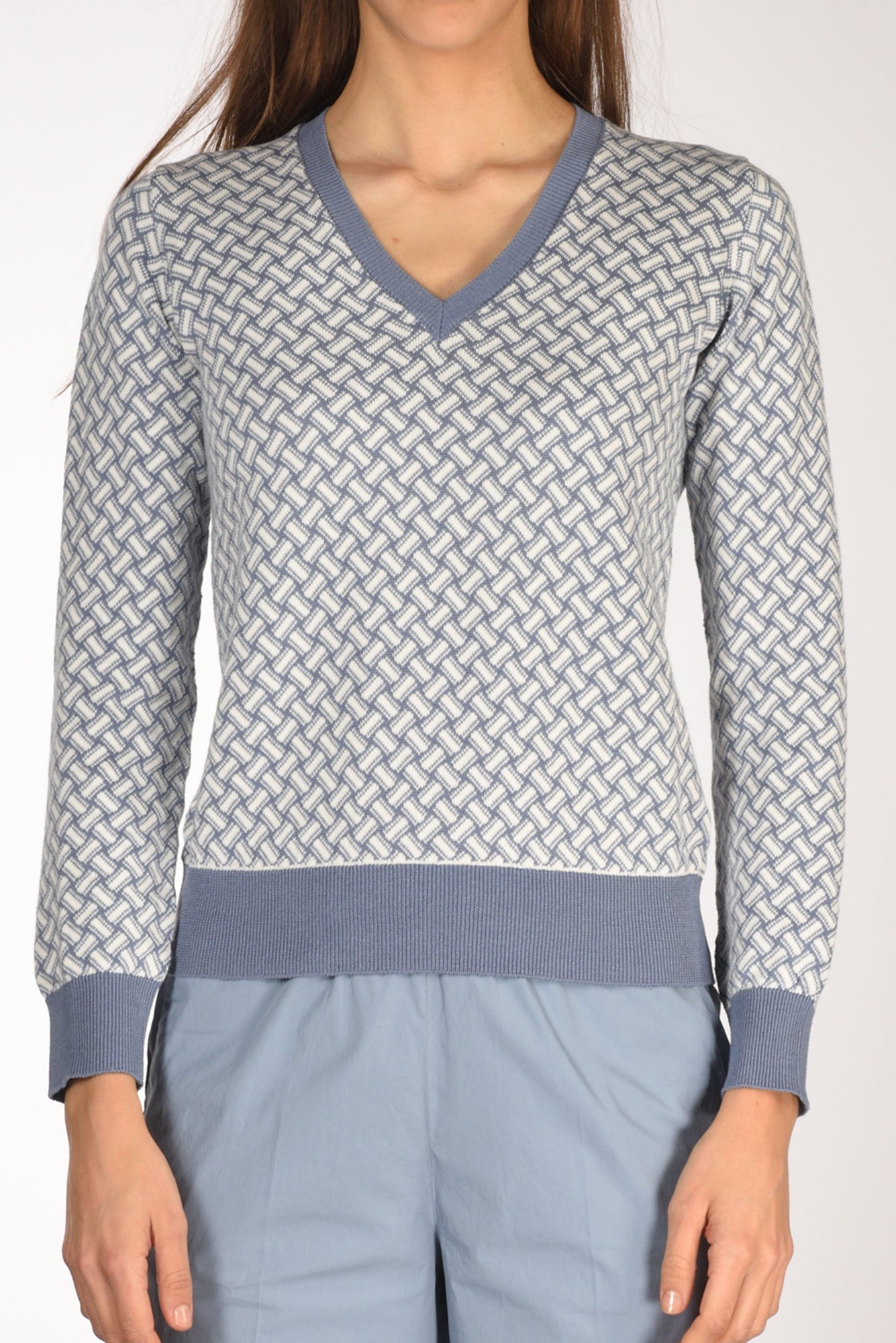 Maglia Scollo A V, Disegno Biscottino, Bordi, Collo E Polsi Lavorati A Coste, Vestibilita' Regular, Made In Italy, Composizione 60 Cotone 40 Lino