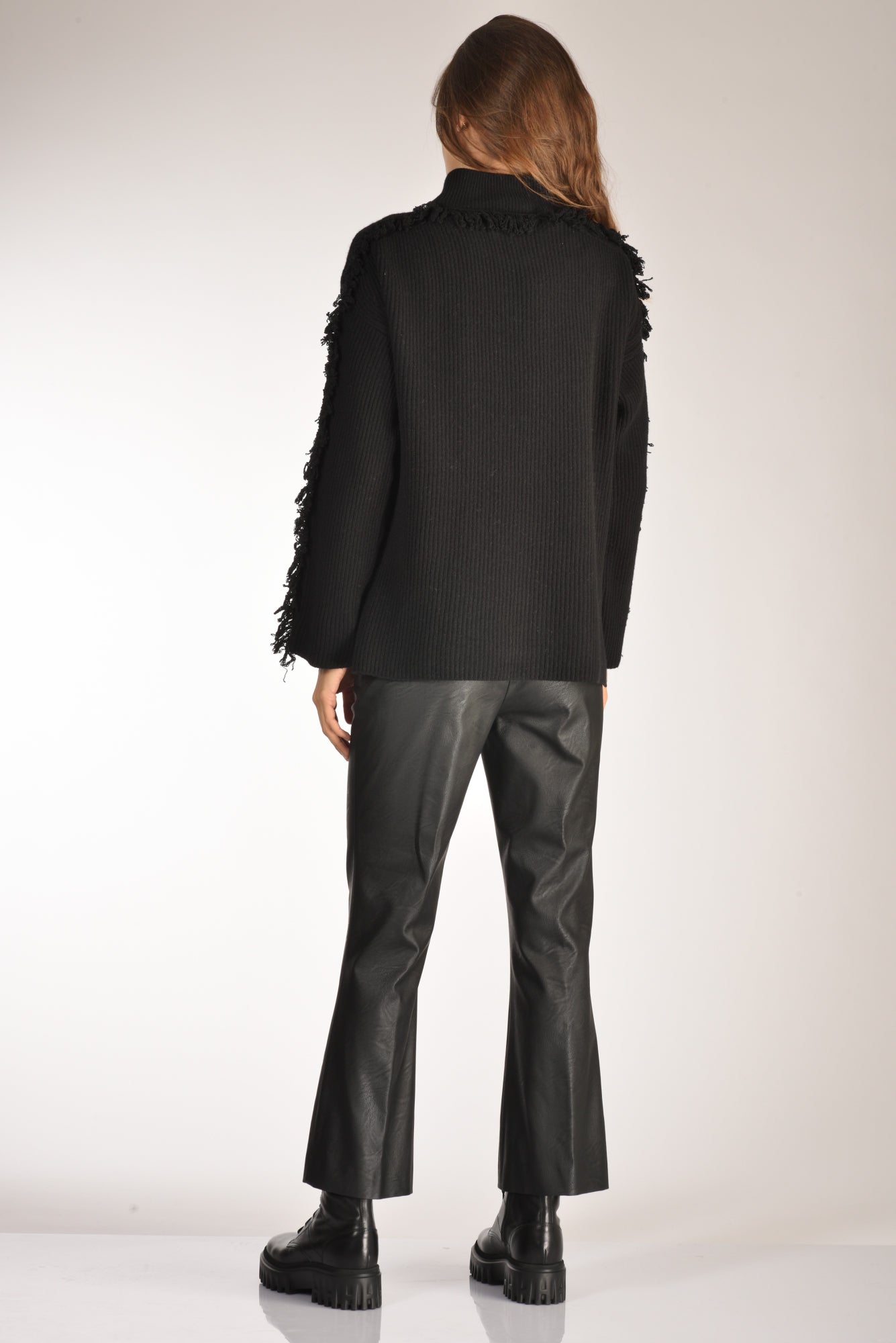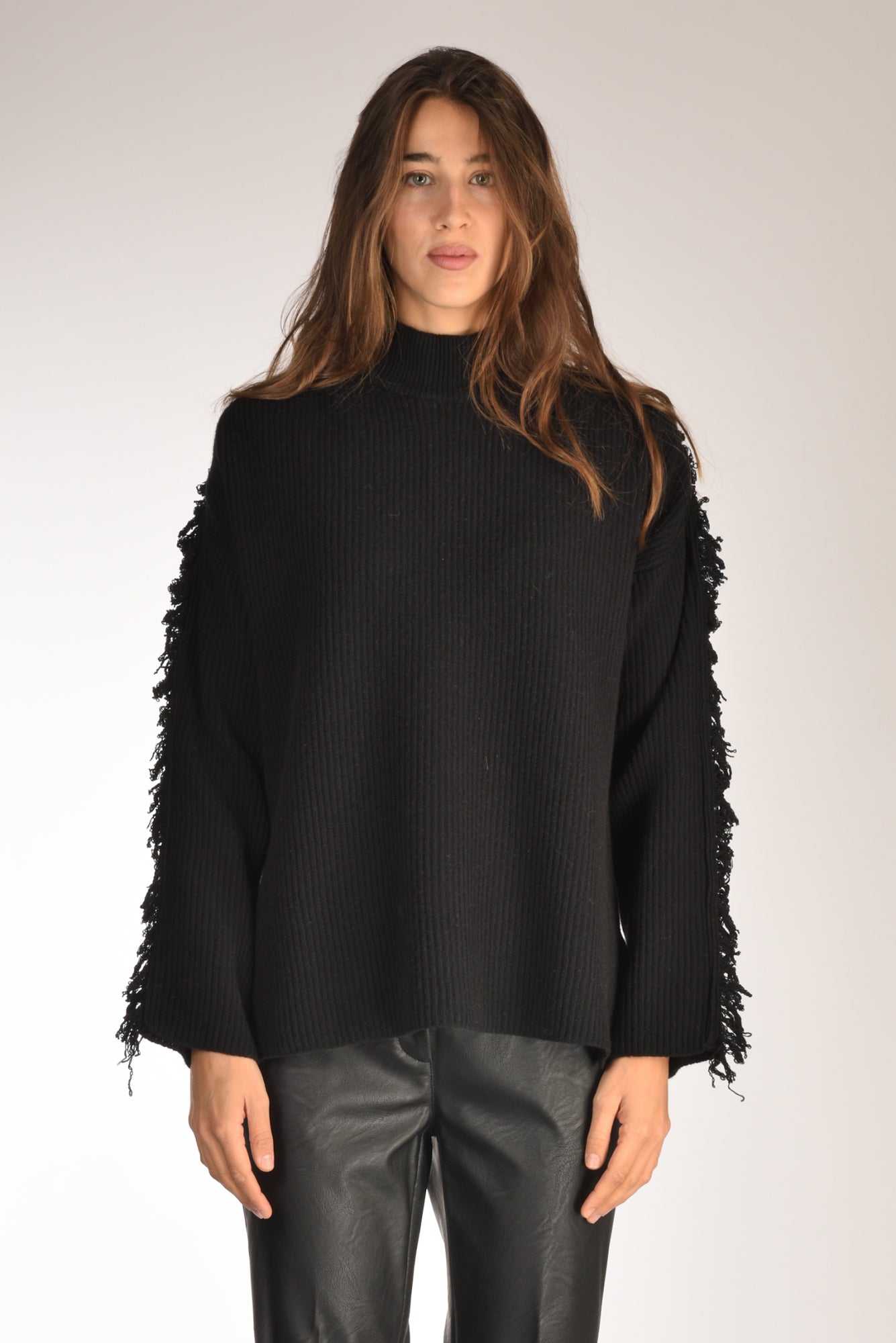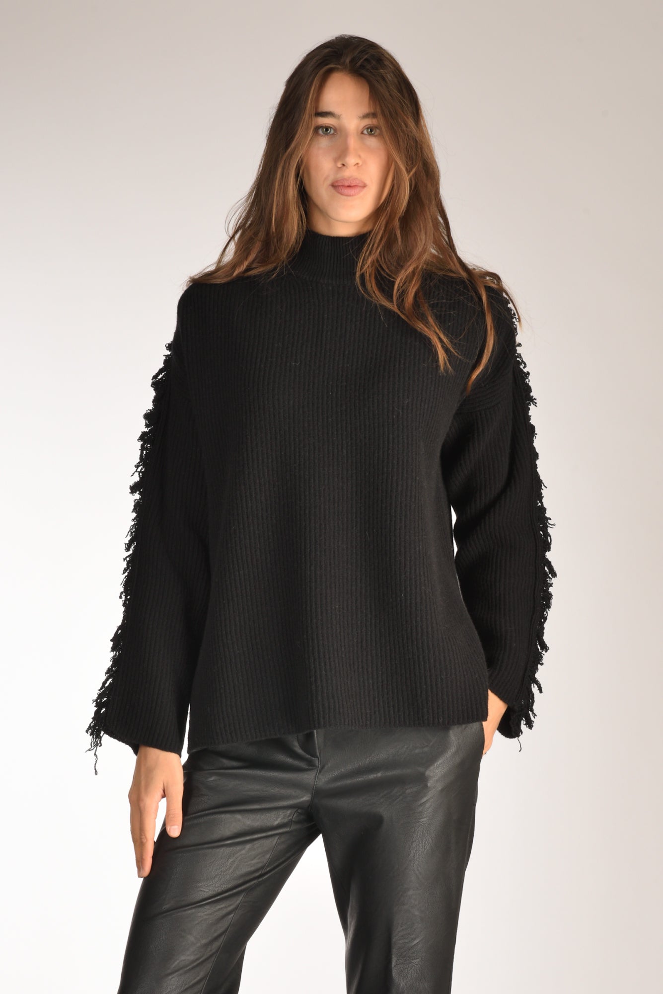 Maglia Collo A Lupetto, Spacchi Laterali, Maniche Ampie Decorate Da Frange, Vestibilita' Over, Composizione 70 Lana, 30 Cachemire, Made In Italy