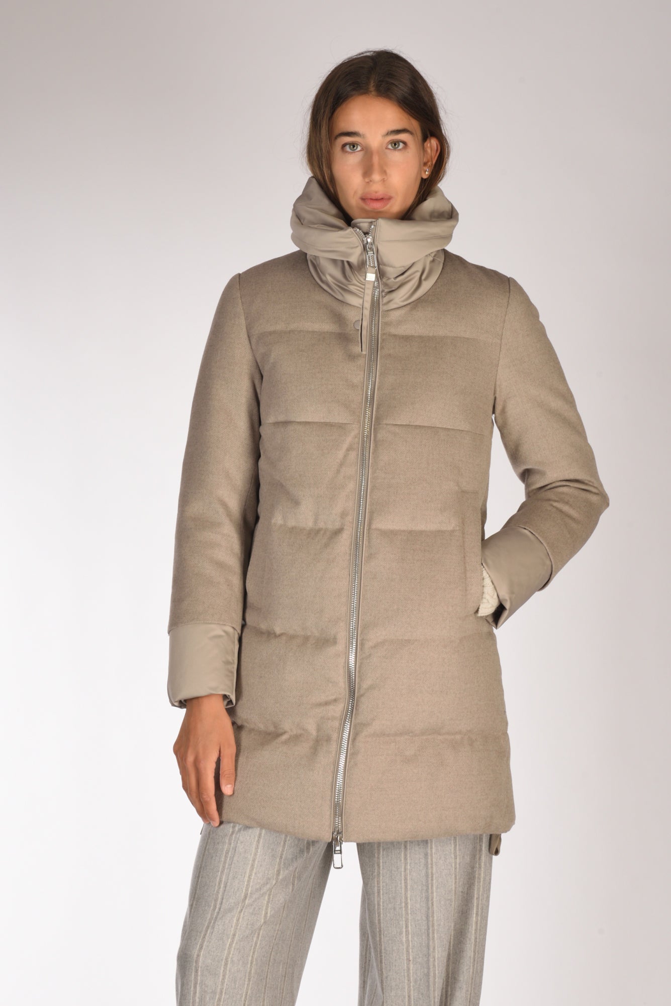 Piumino In Bimateriale Lana E Raso Tecnico, Chiusura Centrale Con Cerniera A Doppio Cursore, Tasche Laterali Inserite, Collo A Cratere Imbottito Con Coulisse Posteriore Per Regolarne L'ampiezza, Coulisse Sul Fondo, Polsino Interno In Maglia Tecnica, Foderato, Vestibilita' Regular, Made In Cina, Composizione 42 Lana 40 Viscosa 18 Poliestere, Secondo Tessuto 100 Poliestere, Fodera 100 Poliammide, Imbottitura 90 Piumino 10 Piuma