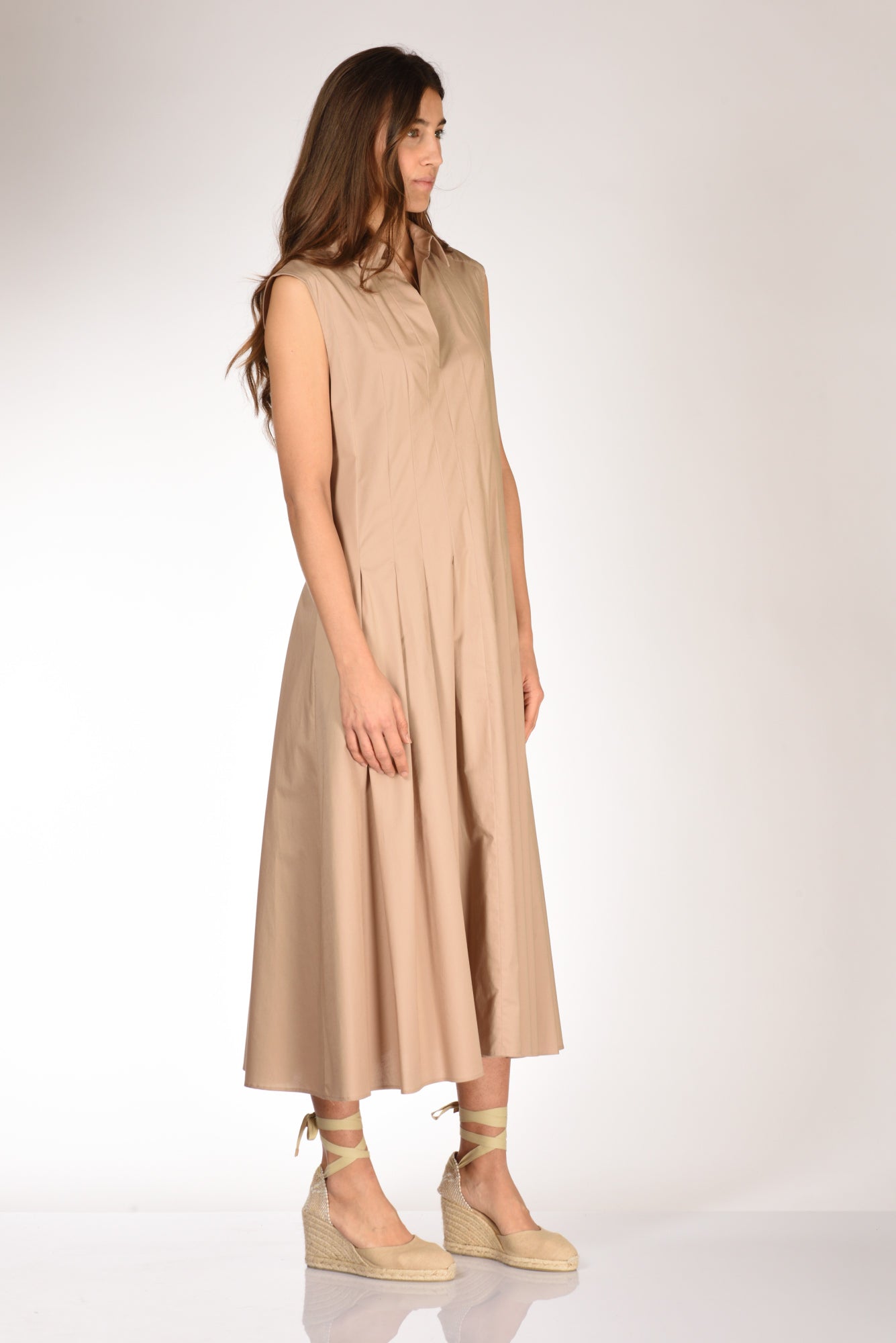 Abito Lungo Smanicato, Collo A Camicia, Scollo V Frontale, Chiuso Da Cerniera Sul Retro, Logo Ricamato Sul Colletto, Motivo Di Pieghe Ambo I Lati, Vestibilita' Regular, Composzione 97 Cotone, 3 Elastan, Made In Italy