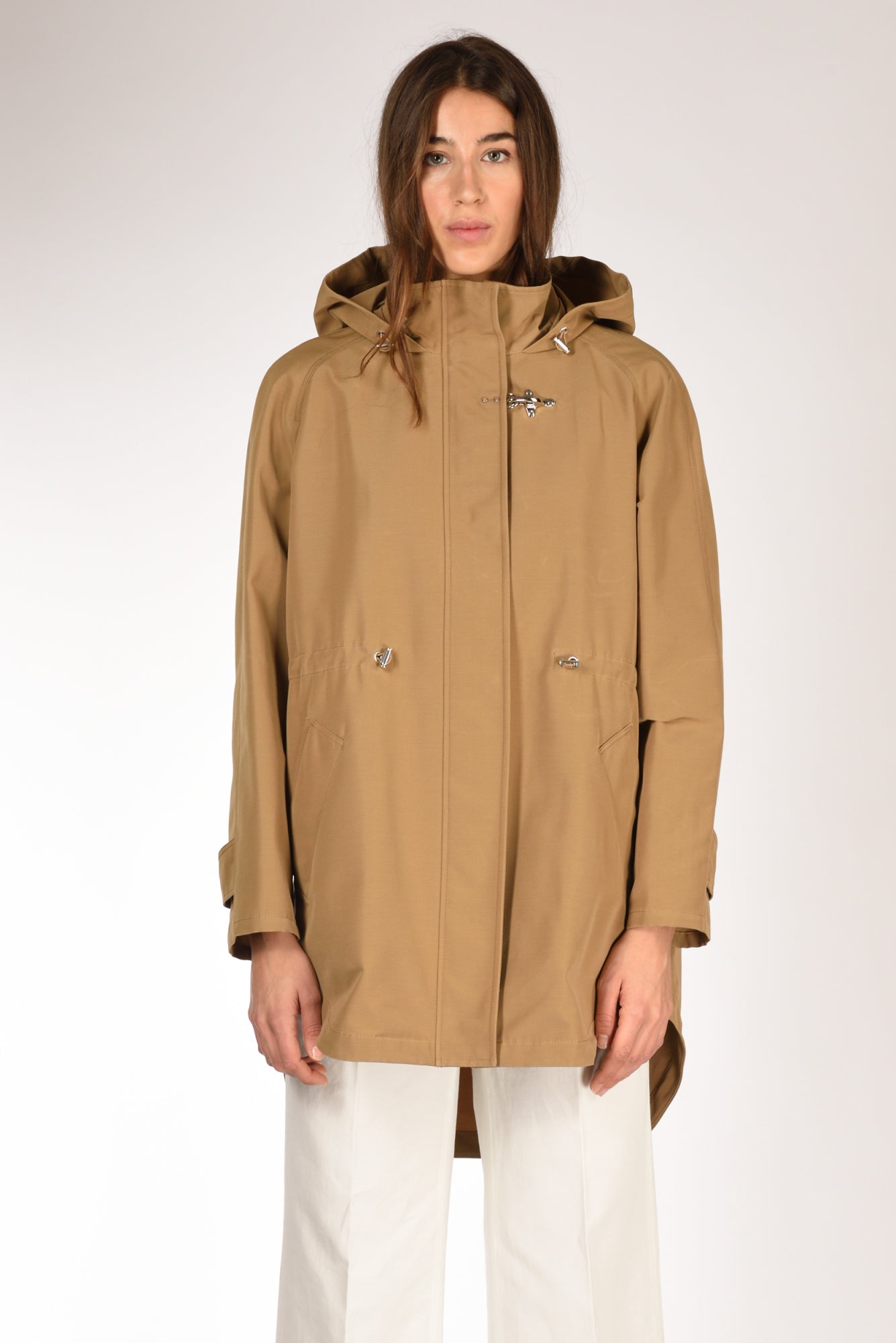 Parka Lungo Sfoderato Realizzato In Cotone Tecnico Con Trattamento Idrorepellente,dotato Di Cappuccio, Girovita Regolato Da Coulisse, Allacciato Con Zip, Automatici Nascosti E Gancio Fay Altezza Collo, Tasche Laterali Inserite, Vestibilita' Regular, Composizione 59 Cotone, 41 Poliestere, Made In Italy