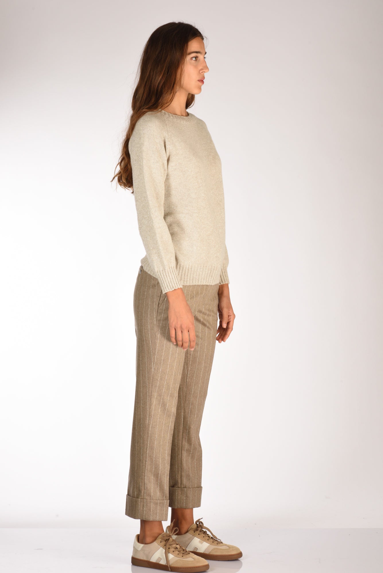 Maglia Girocollo Con Lurex, Bordi E Polsi A Coste, Vestibilita' Slim, Made In Italy, Composizione 97 Cachemire 3 Fibra Metallica