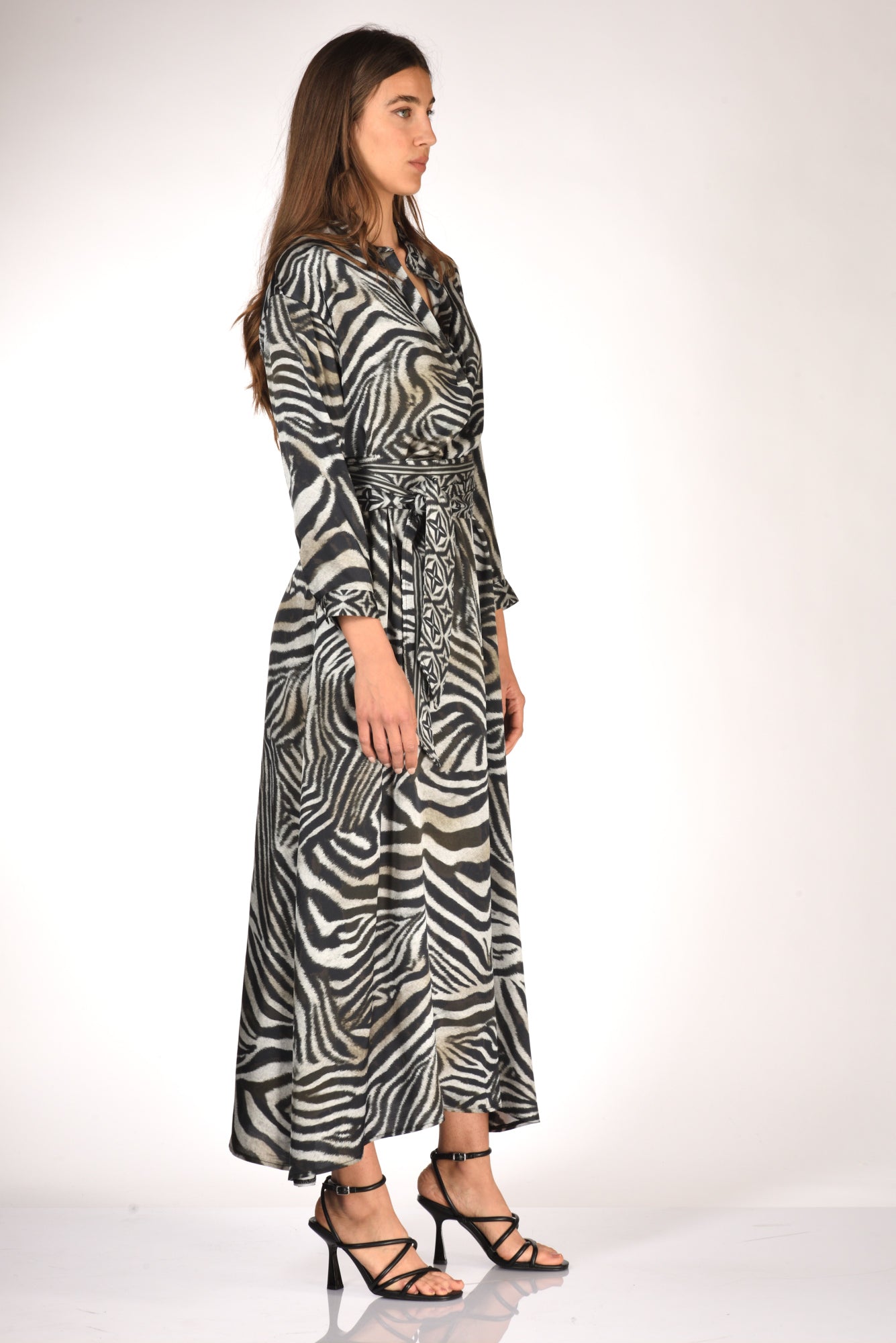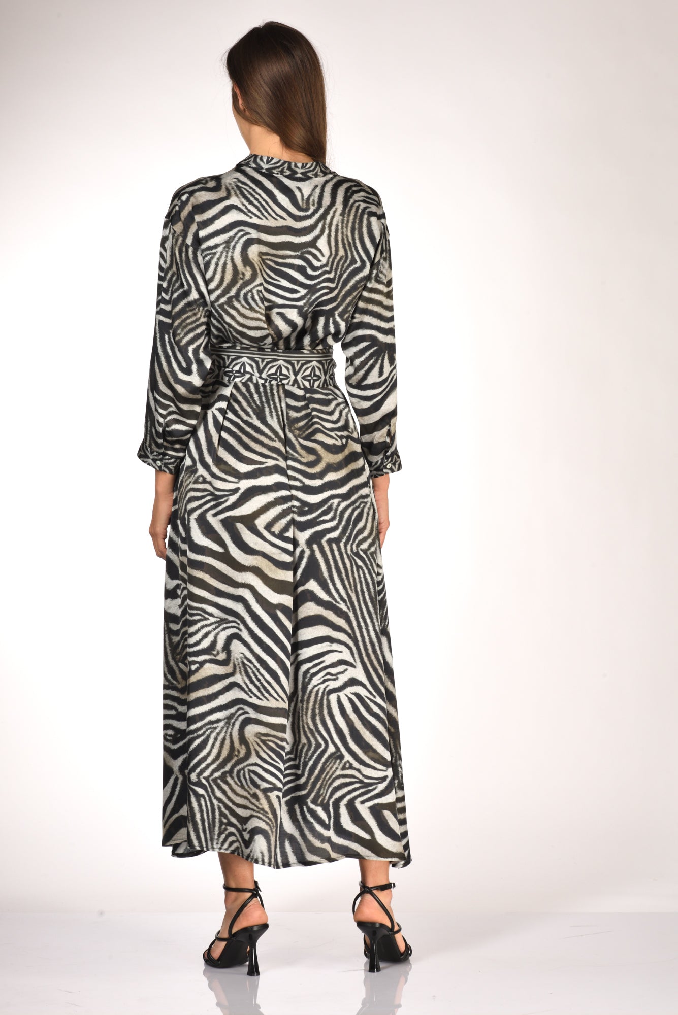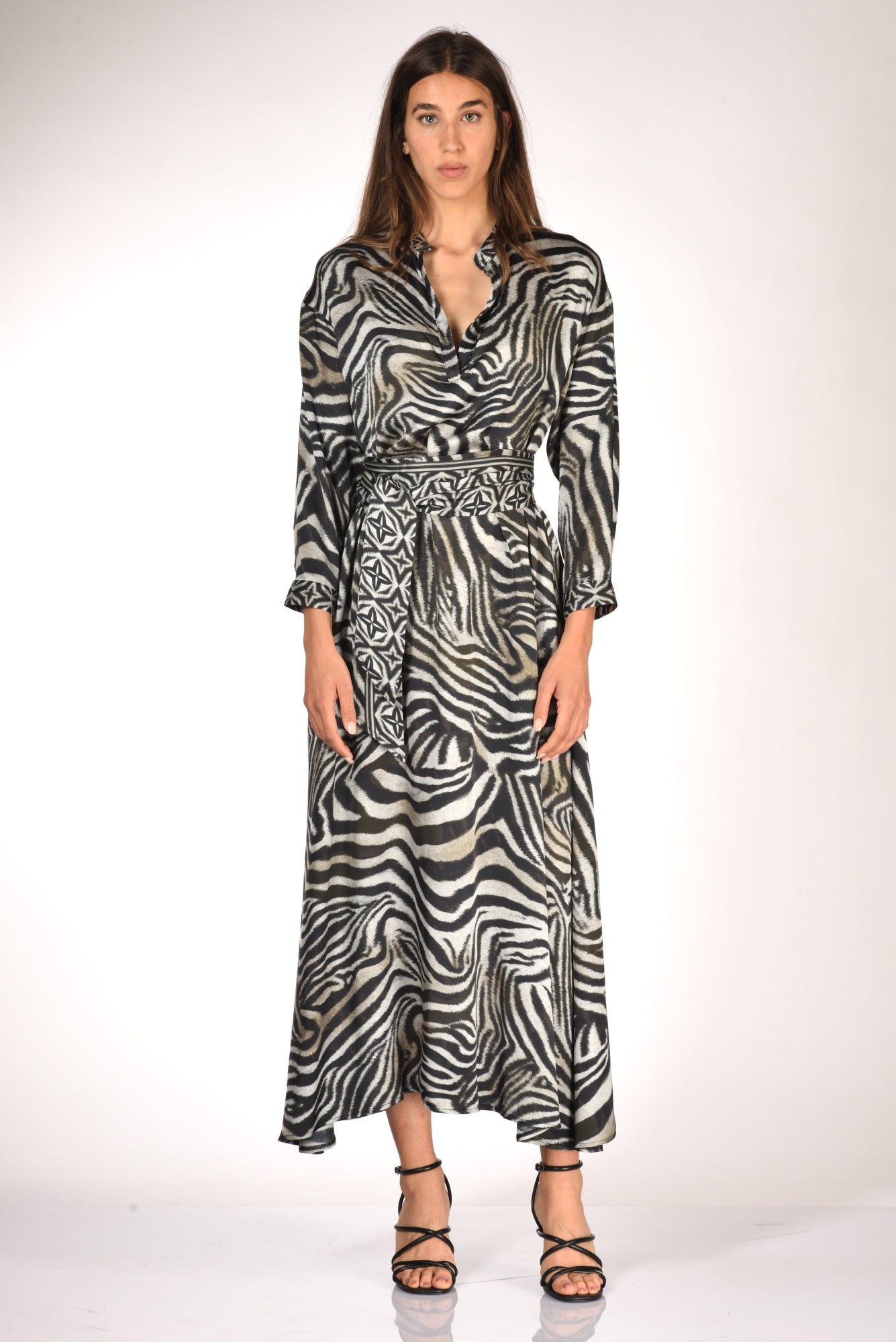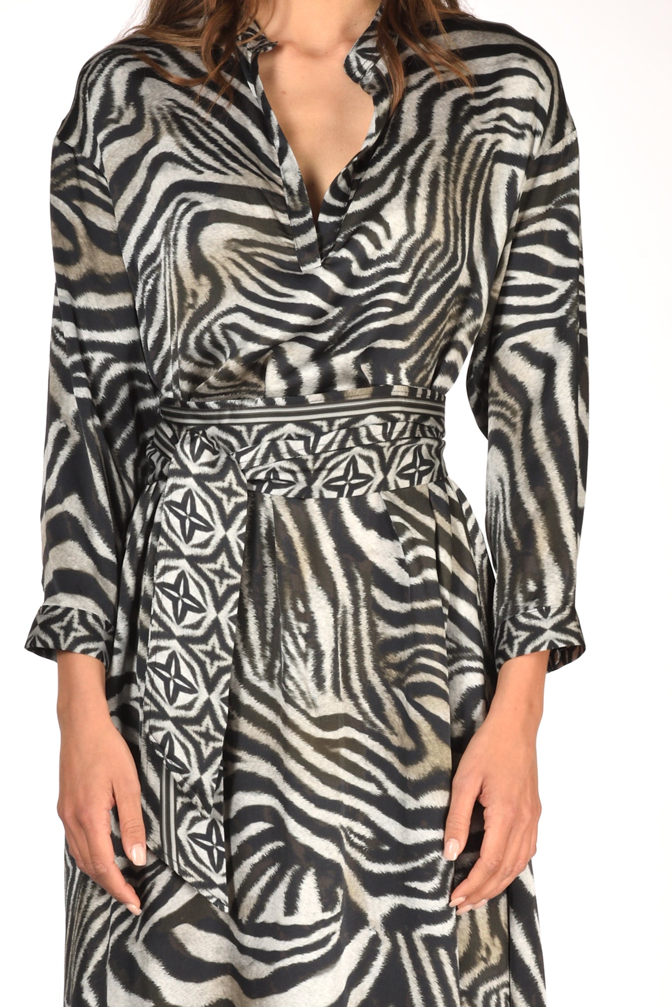 Abito Lungo Stampato, Modello Tunica, Collo Alla Coreana Con Scollo A V, Tasche Inserite, Manica Lunga Con Polsino Chiuso Da Bottone, Cintura A Fusciacca Abbinata, Sfoderato, Vestibilita' Regular, Made In Italy, Composizione 100 Viscosa