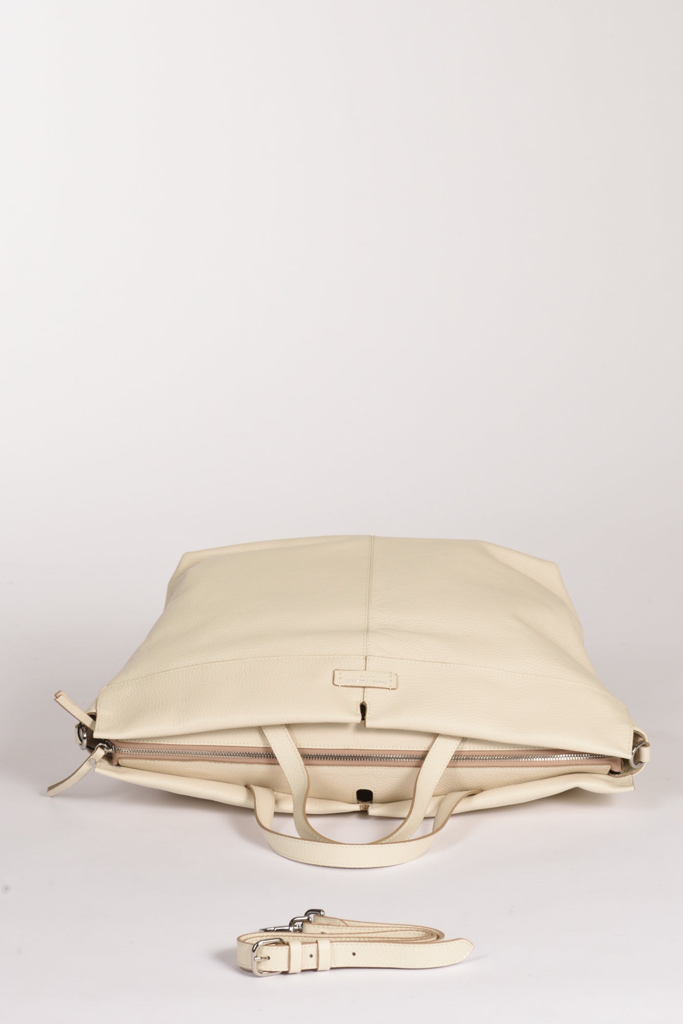Borsa A Mano Dalla Forma Allungata, Realizzata In Pelle Martellata, Dotata Di Tracolla Di Servizio, Presenta Uno Scomparto Principale Chiuso Da Zip, Due Tasche Interne Multiuso Di Cui Una Zippata, Composizione 100 Pelle, Made In Italy, Dimensioni 34x27x11
