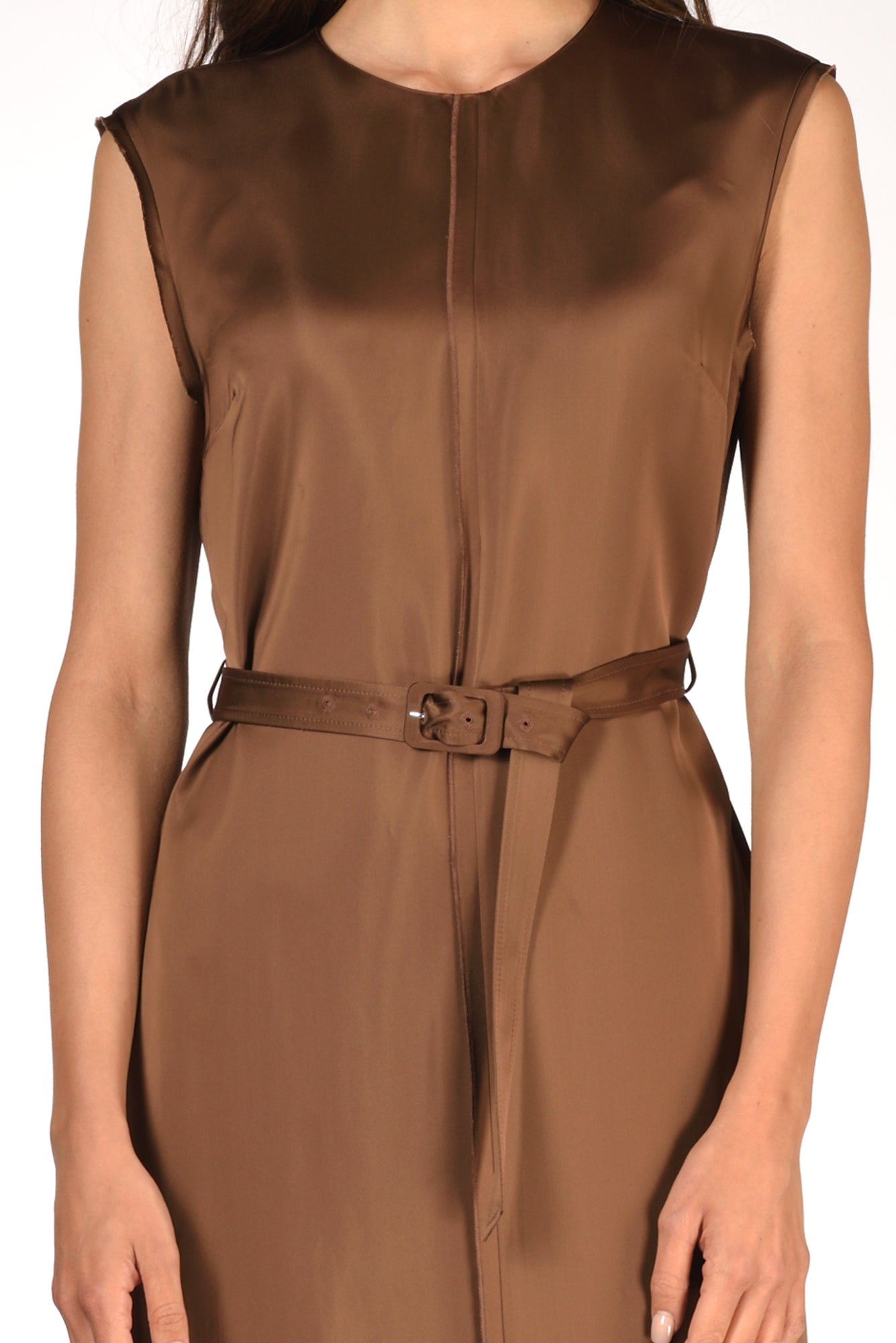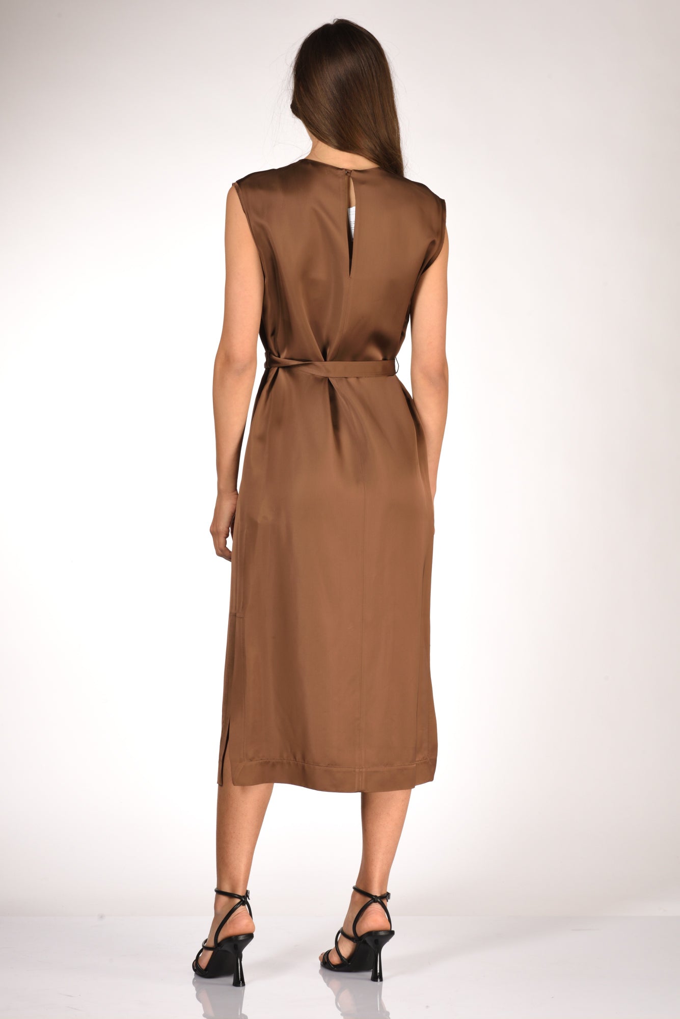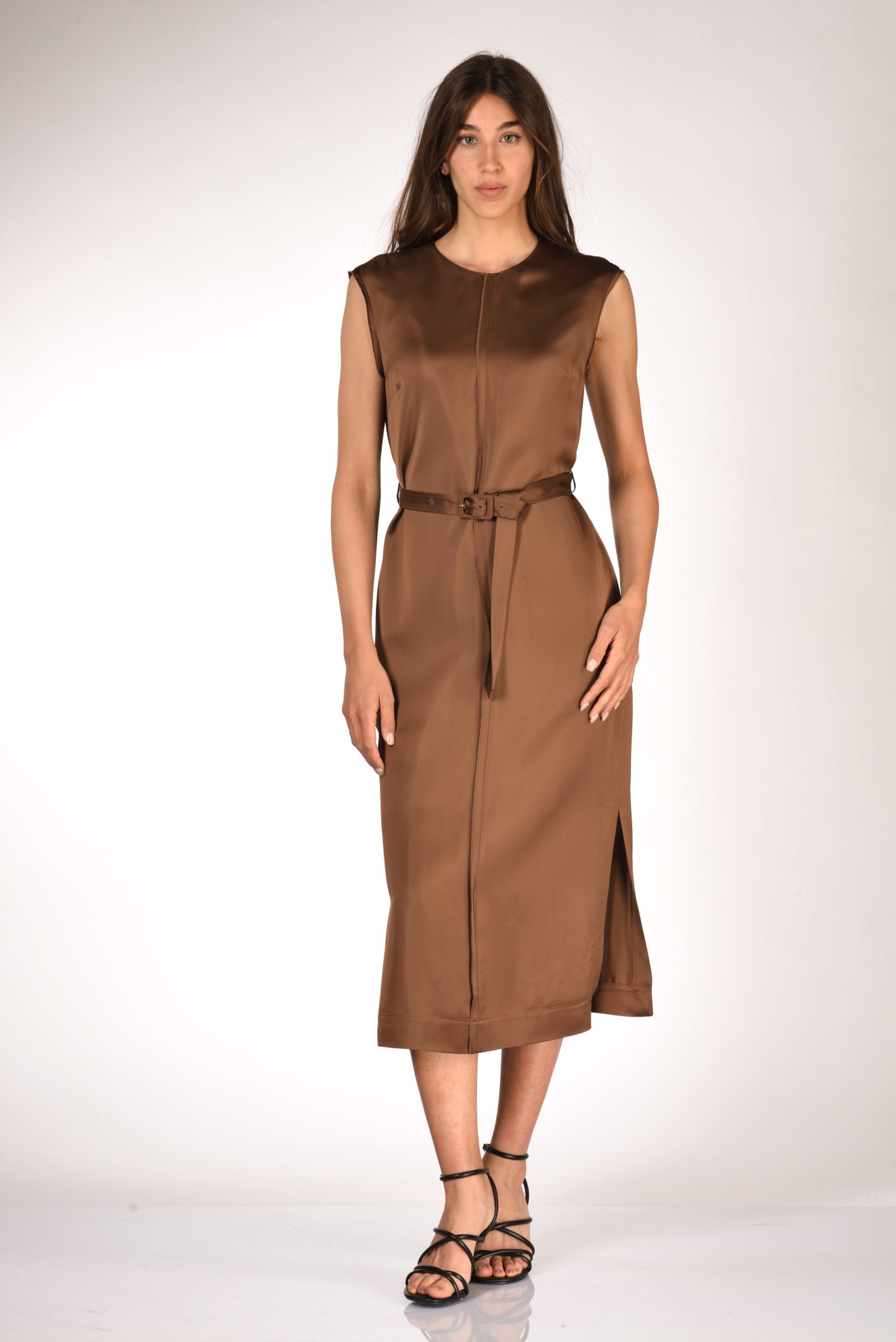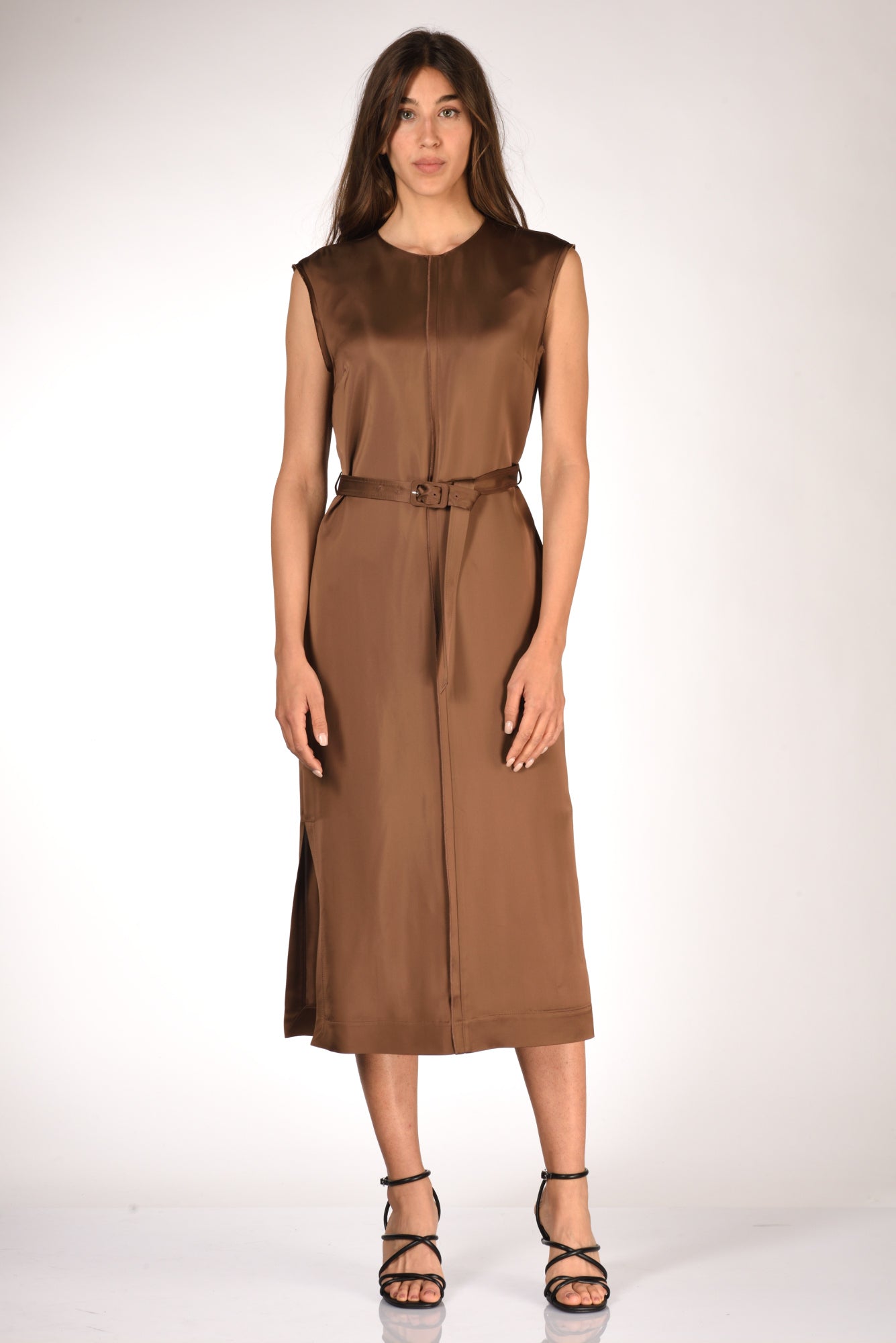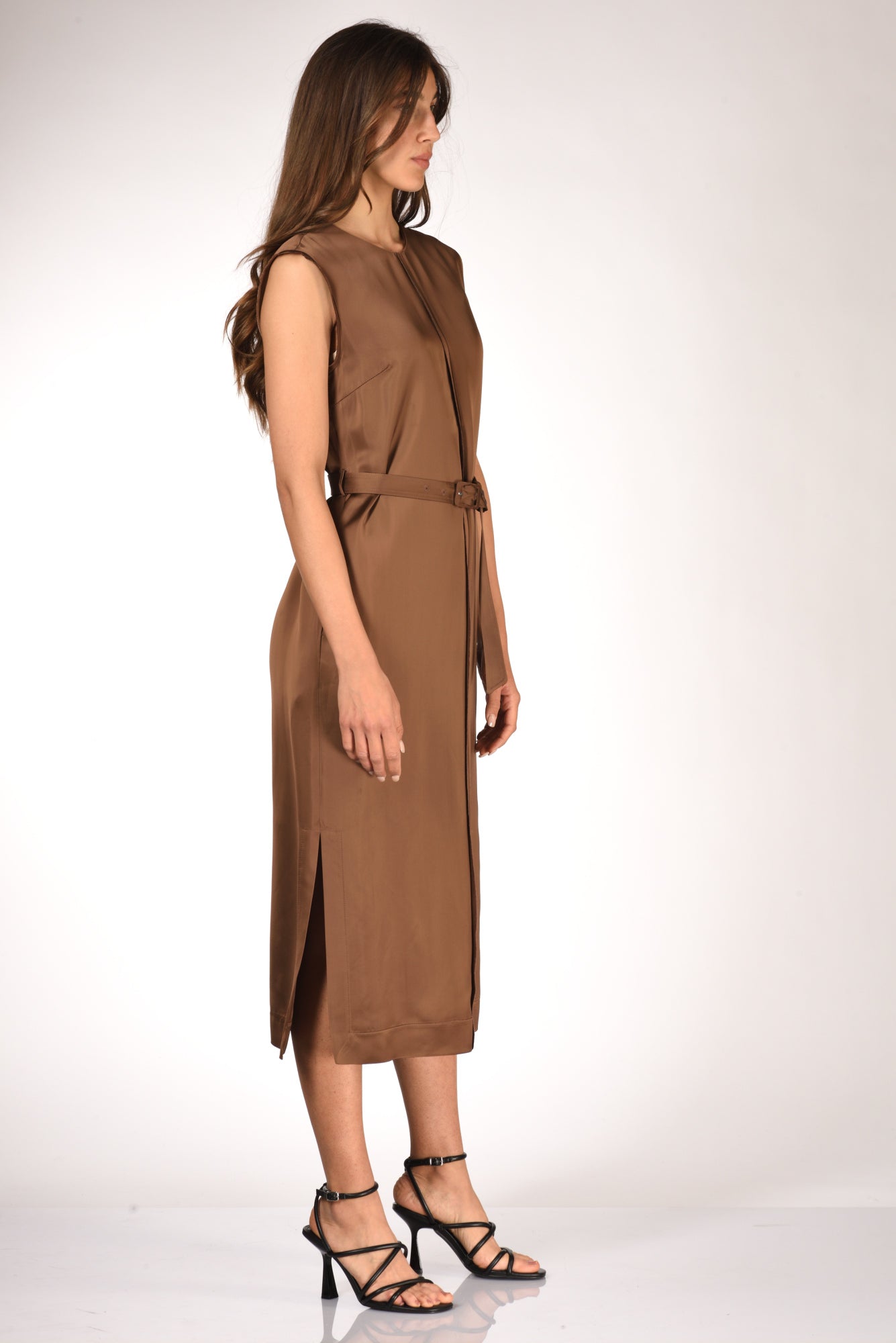 Abito Lungo A Tunica, Girocollo, Senza Maniche, Cintura In Vita, Spacchi Laterali, Nervatura Frontale Decorativa, Chiuso Da Apertura A Goccia Posteriore Con Bottone Ed Asola Volante, Tasche Laterali Inserite, Vestibilita' Regular,composizione 100 Viscosa, Made In Italy