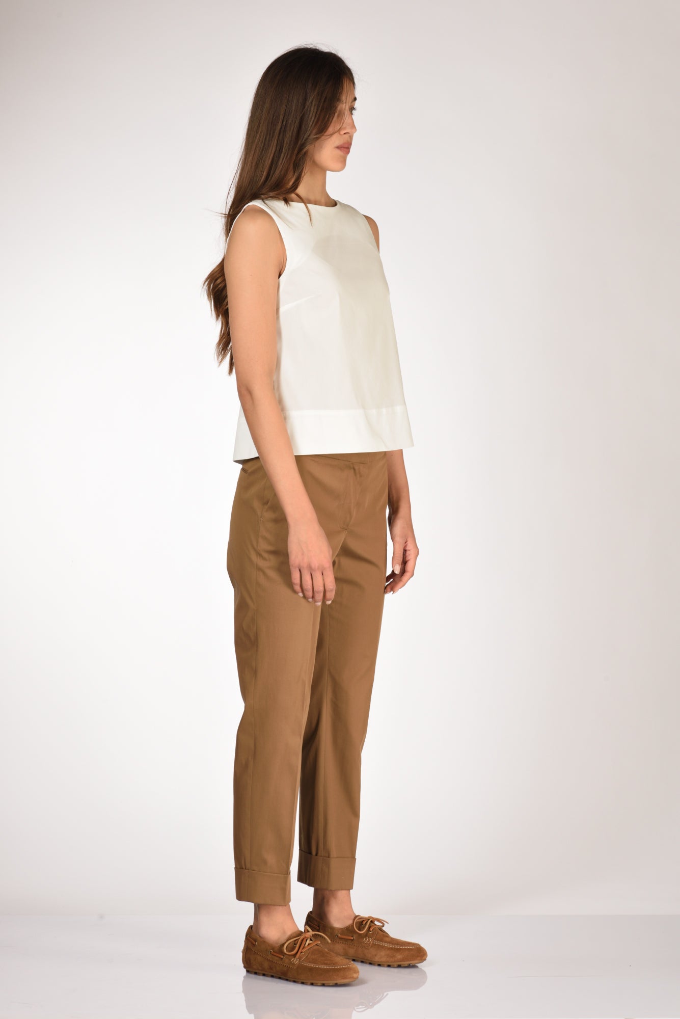 Camicia Smanicata Realizzata In Popeline Di Cotone, Scollo Barchetta, Fiocchi Ornamentali Ed Apertura A Goccia Posteriori, Fondo Con Logo Metallico, Linea Diritta, Vestibilita' Regular, Made In Bulgaria, Composizione 63 Cotone, 37 Poliestere