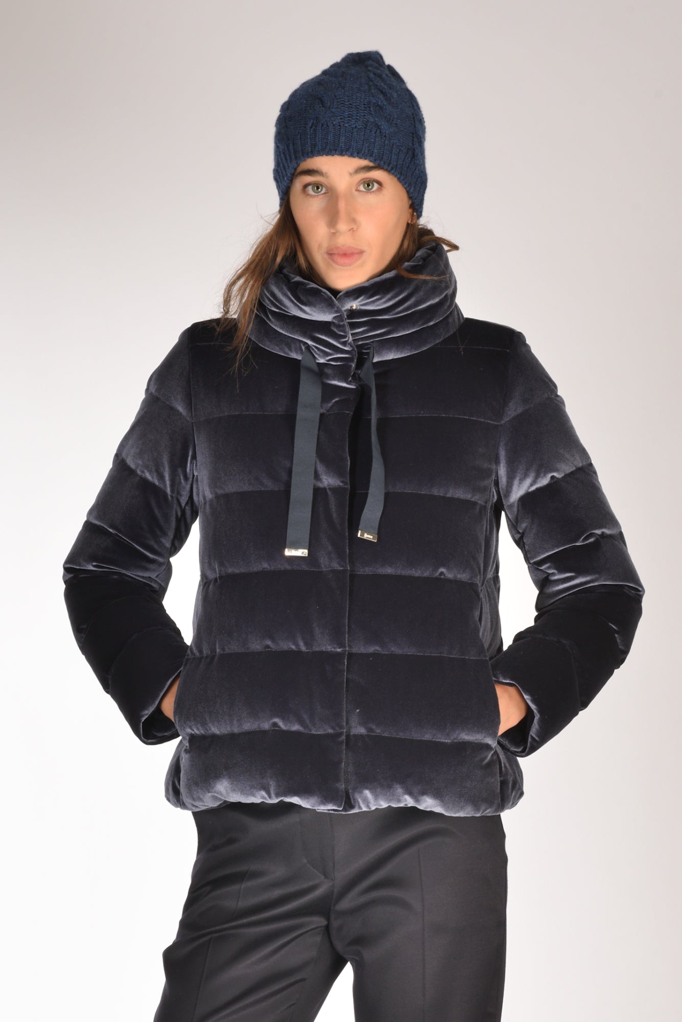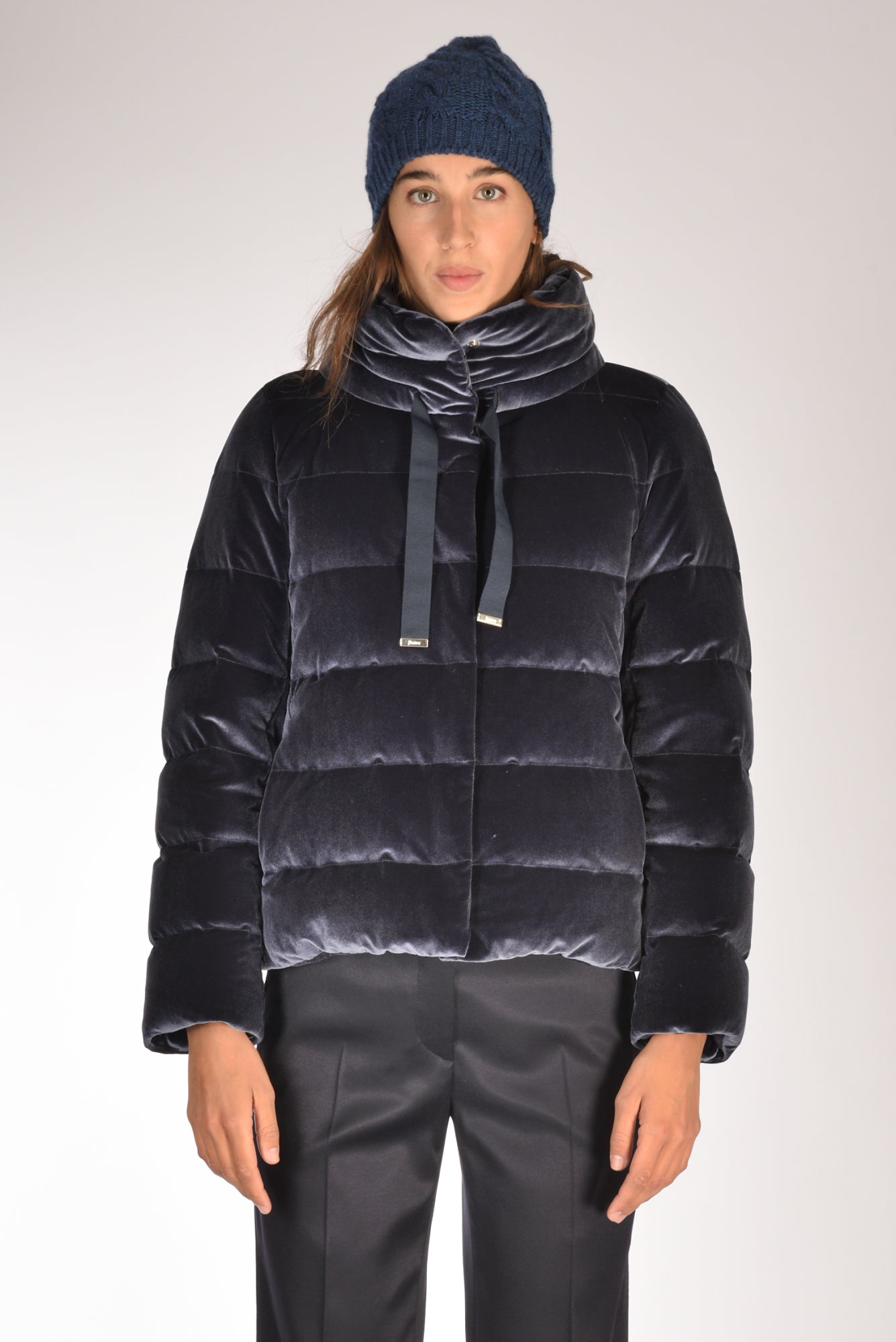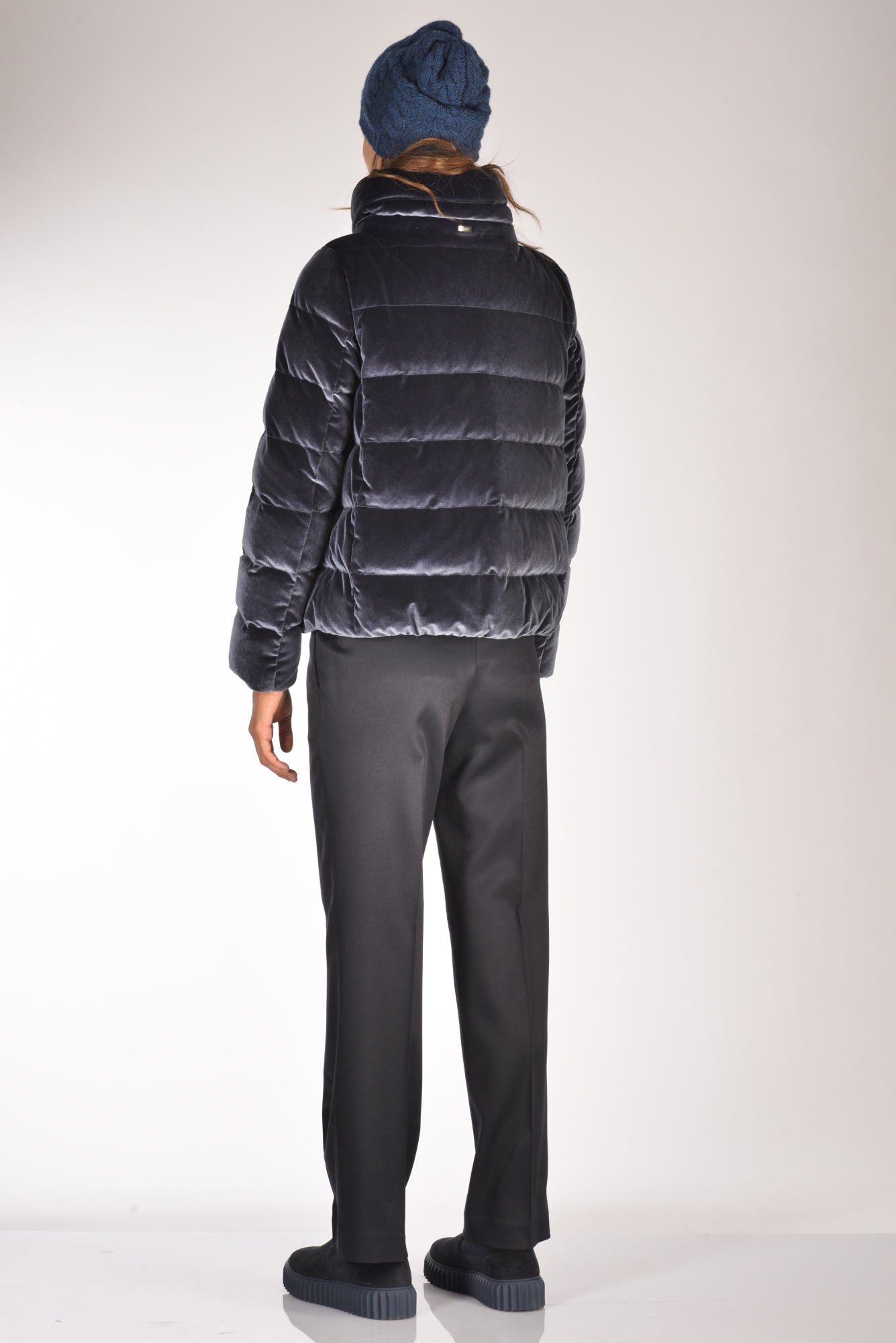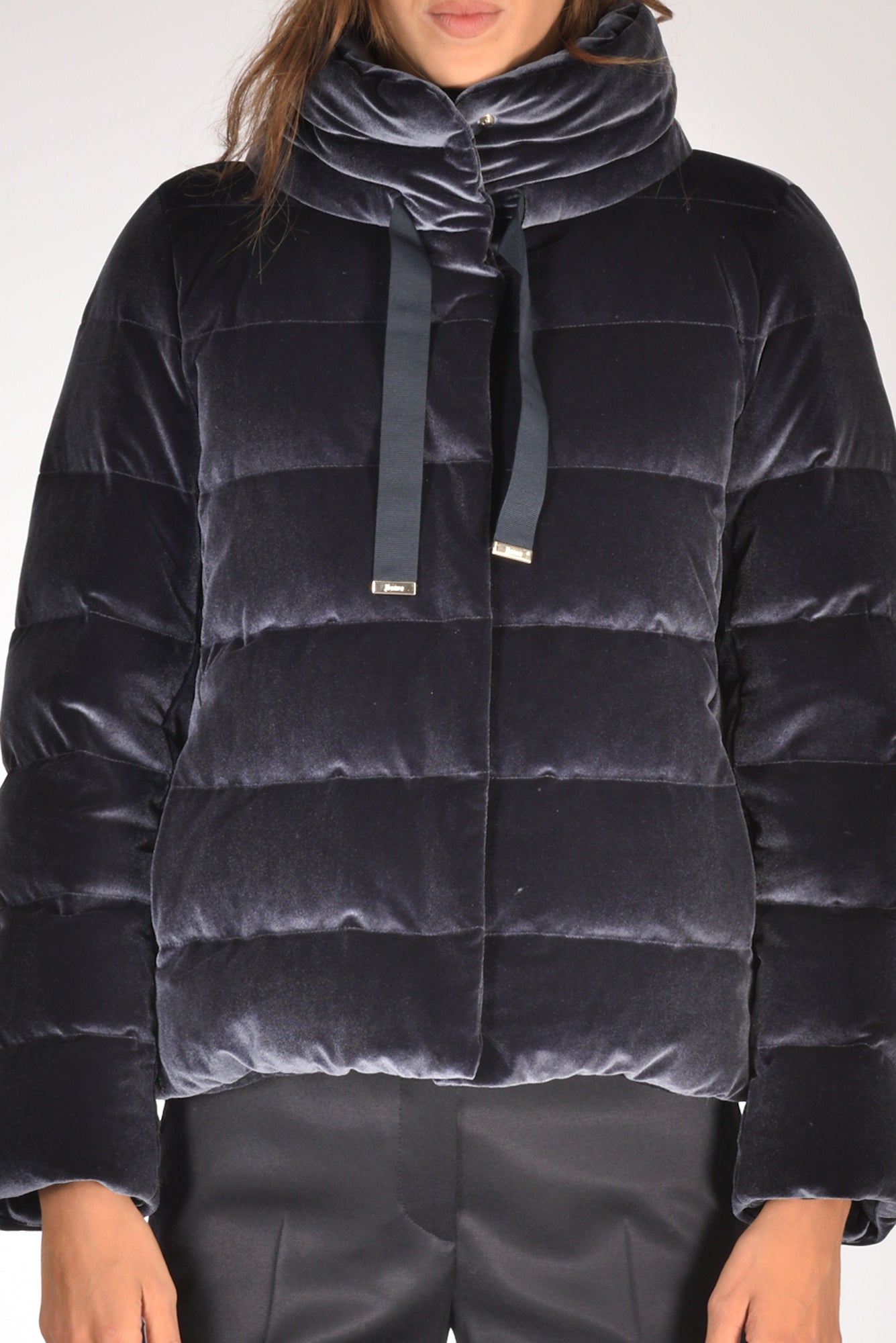 Piumino Corto Finishing Velluto, Collo Ad Anello Con Nastri In Gros Grain Per Regolarne L'ampiezza, Tasche Laterali Inserite, Chiuso Da Bottoni Automatici Nascosti, Vestibilita' Regular, Made In Romania, Composizione 90 Poliestere,10 Elastan, Fodera 100 Poliammide, Imbottitura 80 Piumino 20 Piuma, Guarnizioni 55 Cotone, 45 Poliestere