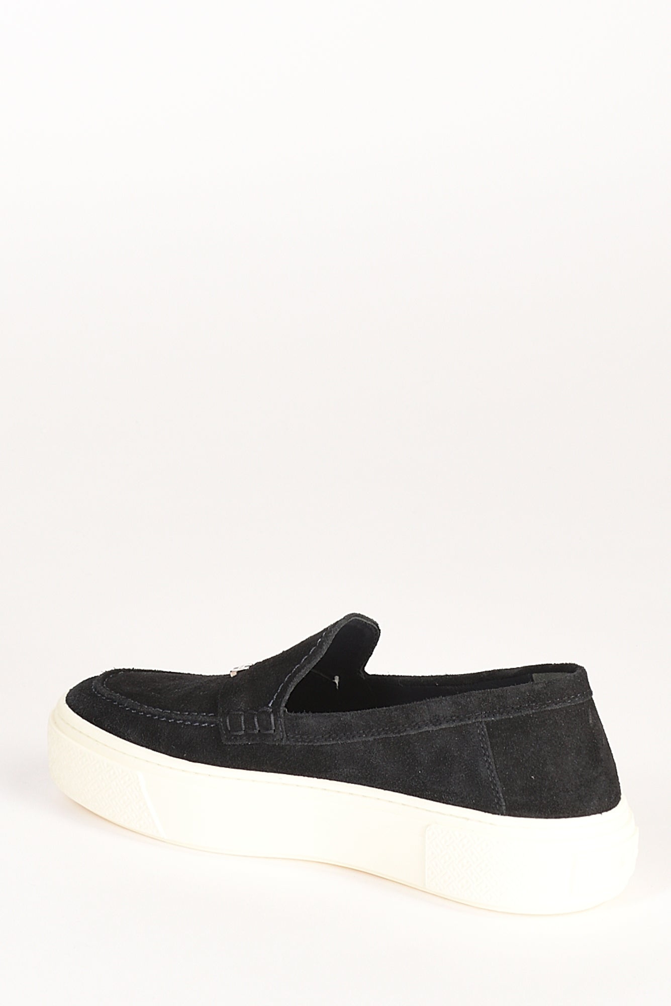 Mocassino, Tomaia In Pelle Scamosciata, Mascherina Con Charm H Metallico Frontale, Impunture Fatte A Mano, Soletta In Memory Foam Da 8 Mm, Suola Alta In Gomma 4.