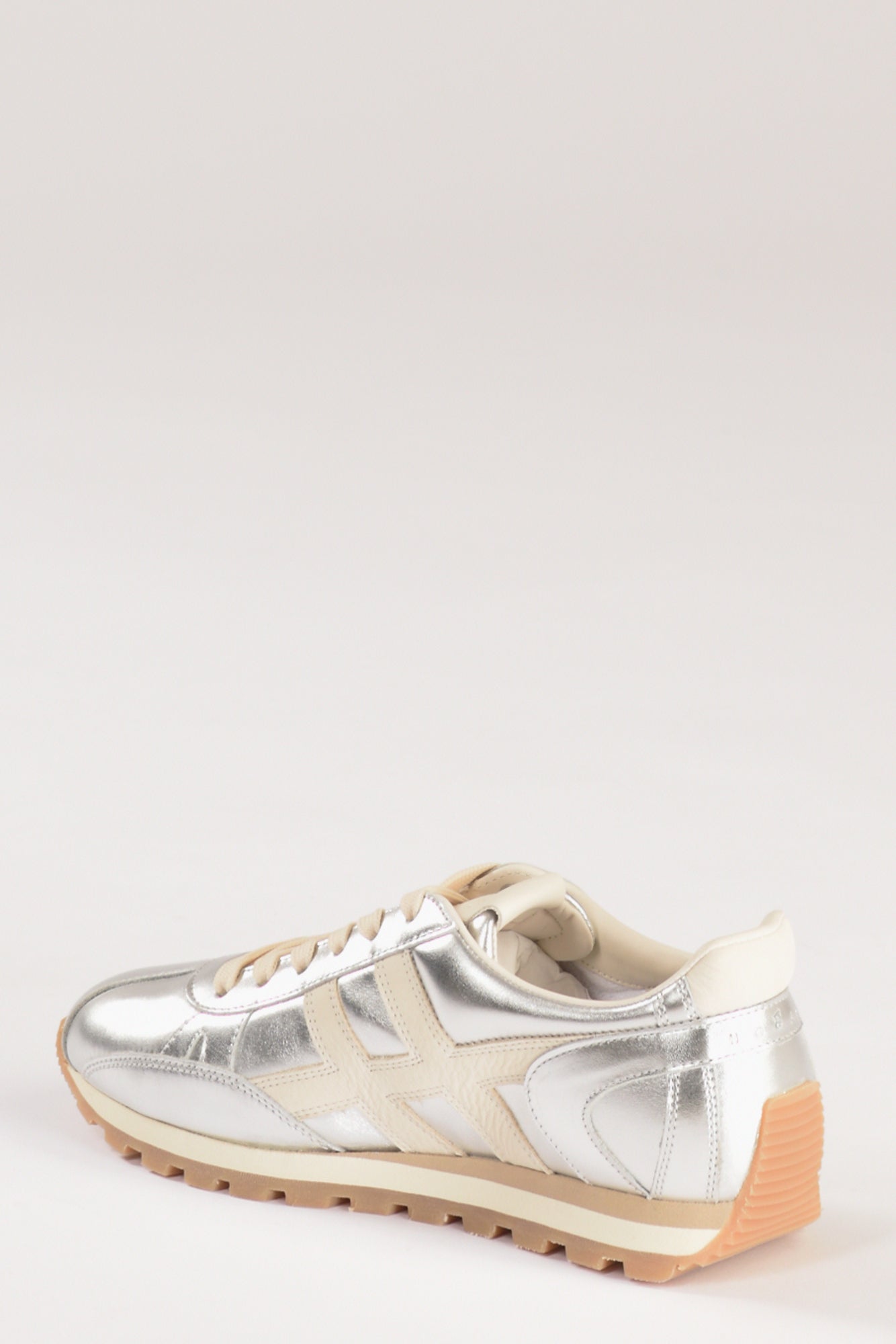 Sneakers Con Tomaia In Pelle Metallizzata, H In Nabuk Applicata Sul Lato, Dettagli In Pelle Liscia, Soletta In Memory Foam 5 Mm, Suola In Eva, Battistrada Con Tacchetti Che Disegna Anche Il Rinforzo Sul Tallone, Composizione Pelle, Gomma, Made In Italy,