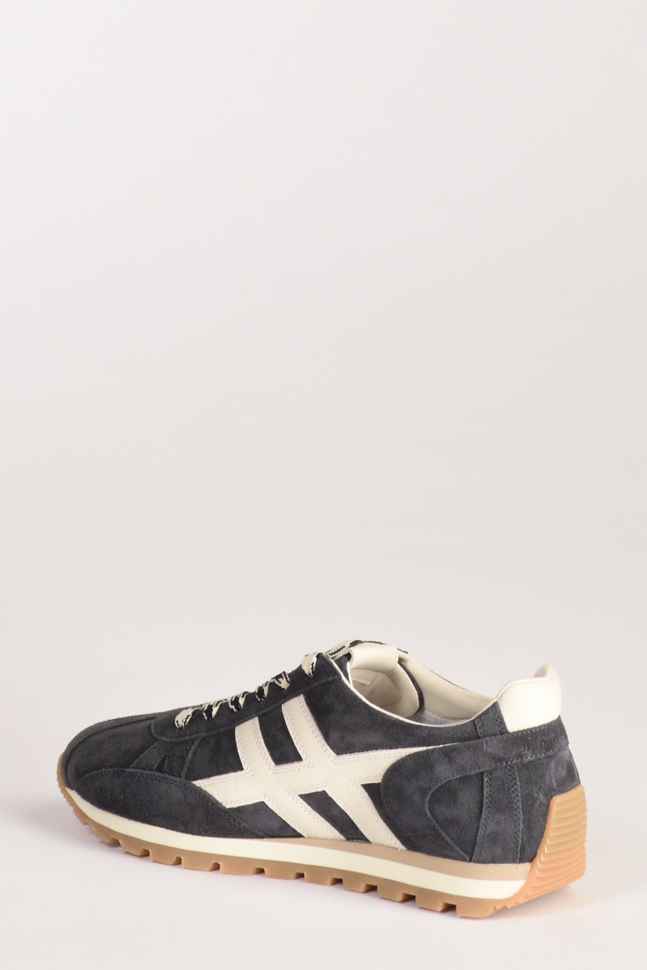 Sneakers Con Tomaia In Pelle Scamosciata, H In Pelle Liscia Applicata Sul Lato, Soletta In Memoty Foam 5 Mm, Suola In Eva Extralight Con Battistrada Con Tacchettiche Disegna Anche Il Rinforzo Sul Tallone, Altezza Totale 4 Cm, Composizione Pelle, Gomma, Made In Italy