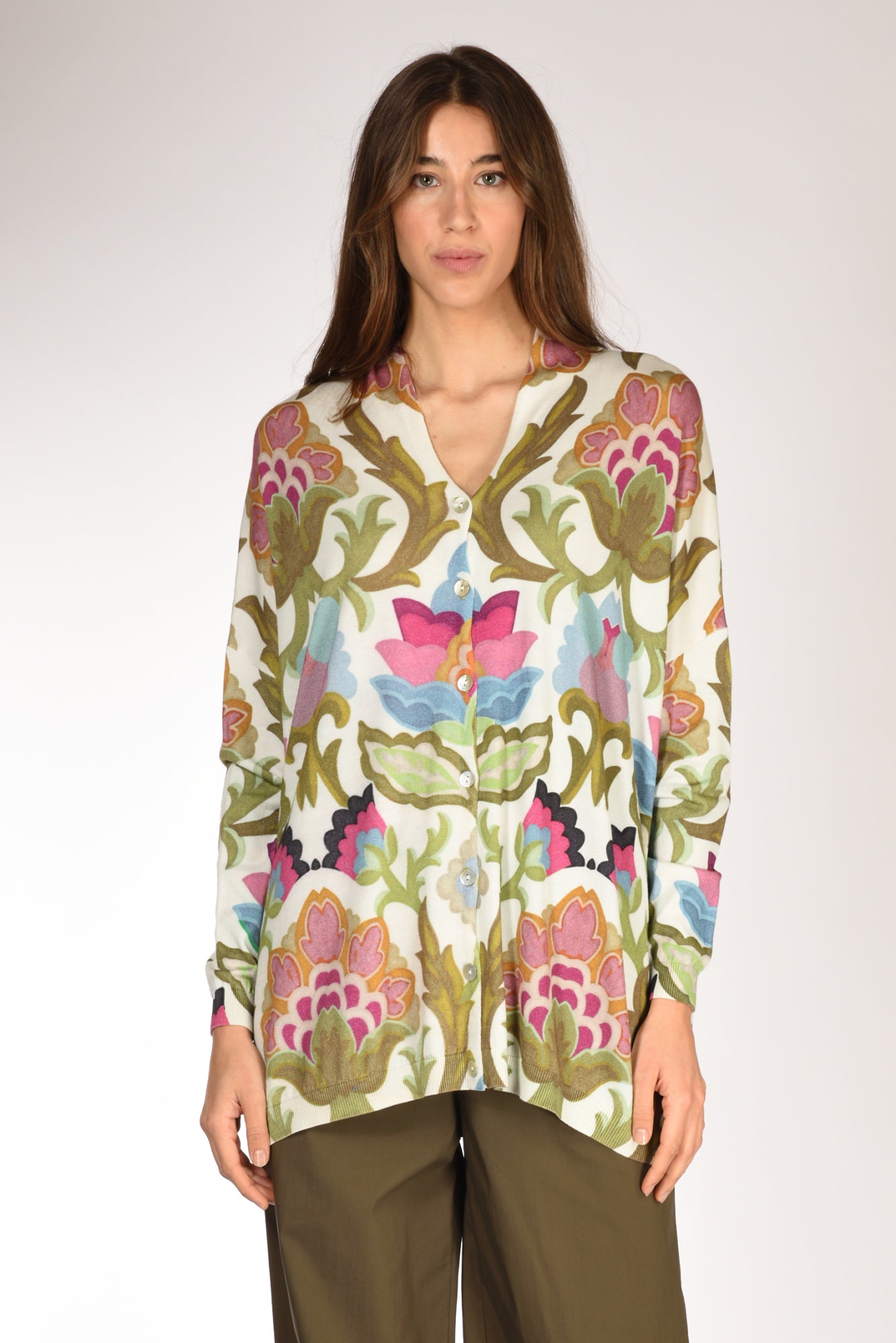Cardigan Ampio, Scollo Sciallato, Spalla Scesa, Chiuso Da Bottoni Frontali, Vestibilita' Over, Composizione 50 Cotone, 50 Viscosa, Made In Italy