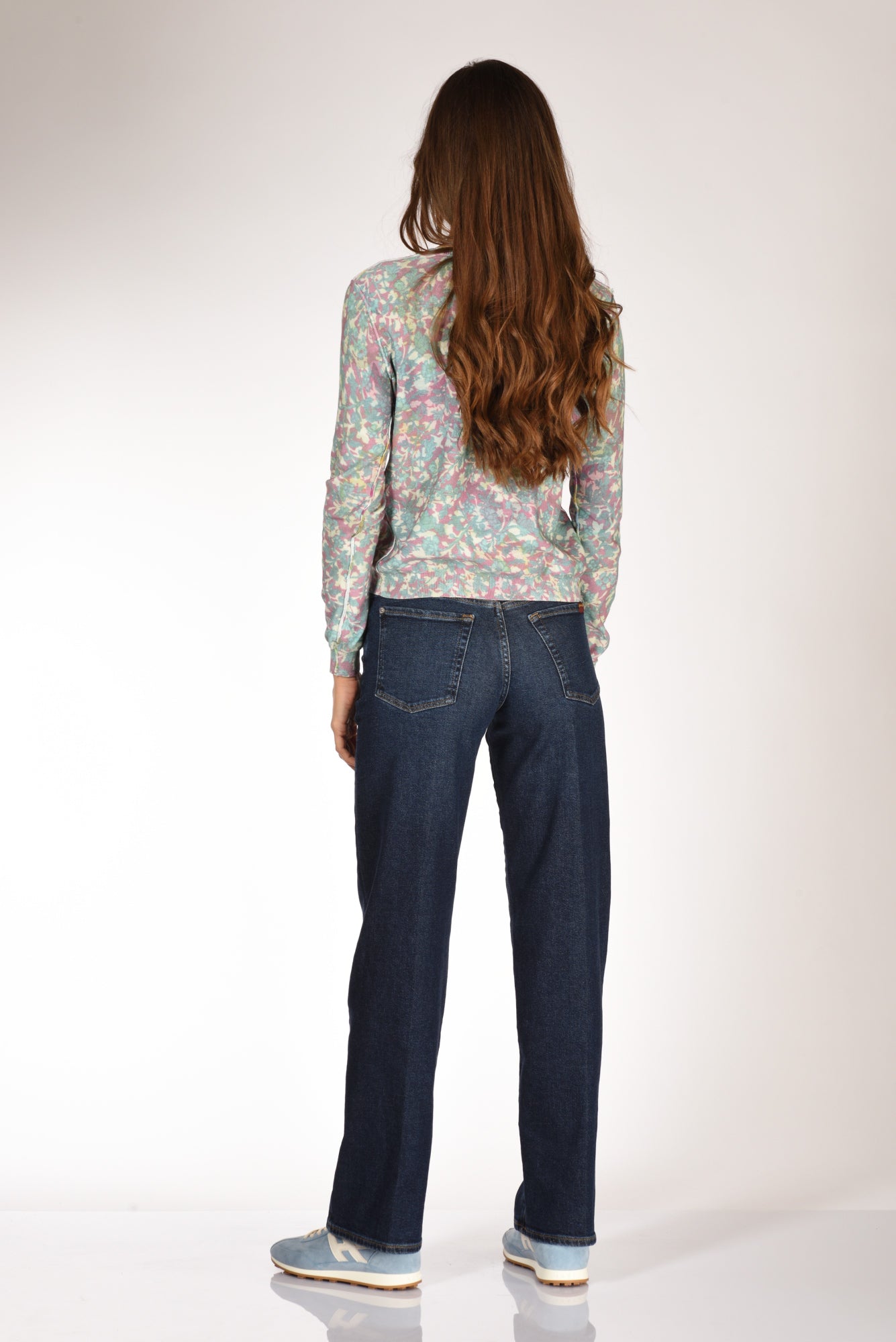 La modella in fotografia è alta 180 cm e misura seno 87 cm, vita 56 cm, fianchi 90 cm indossa la seguente taglia 40 o S mentre di jeans 26 e di calzatura 40