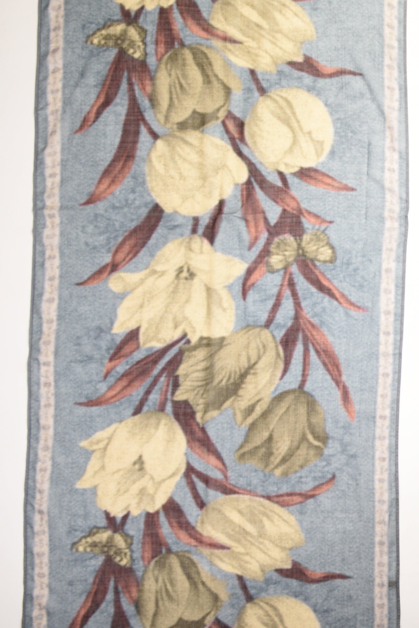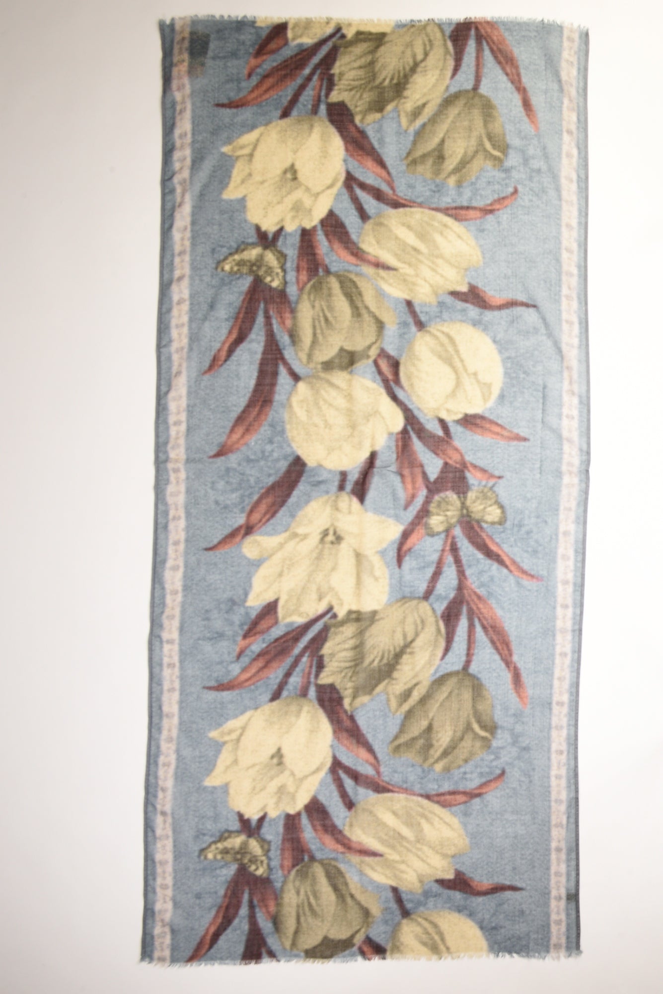 Sciarpa Stampa Fiori Contrasto Colore, Dimensioni 90x190, Composizione 100 Lana, Made In India