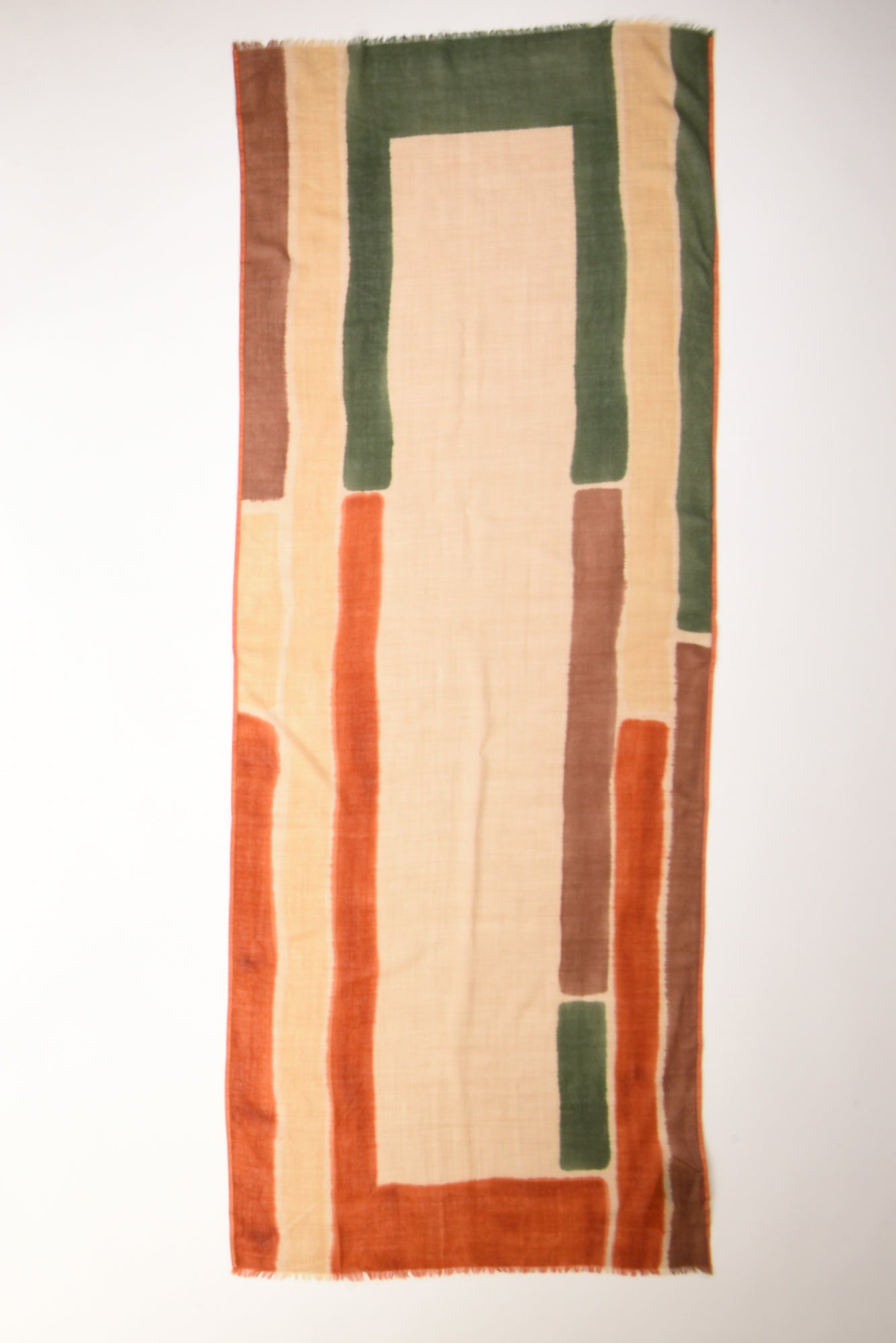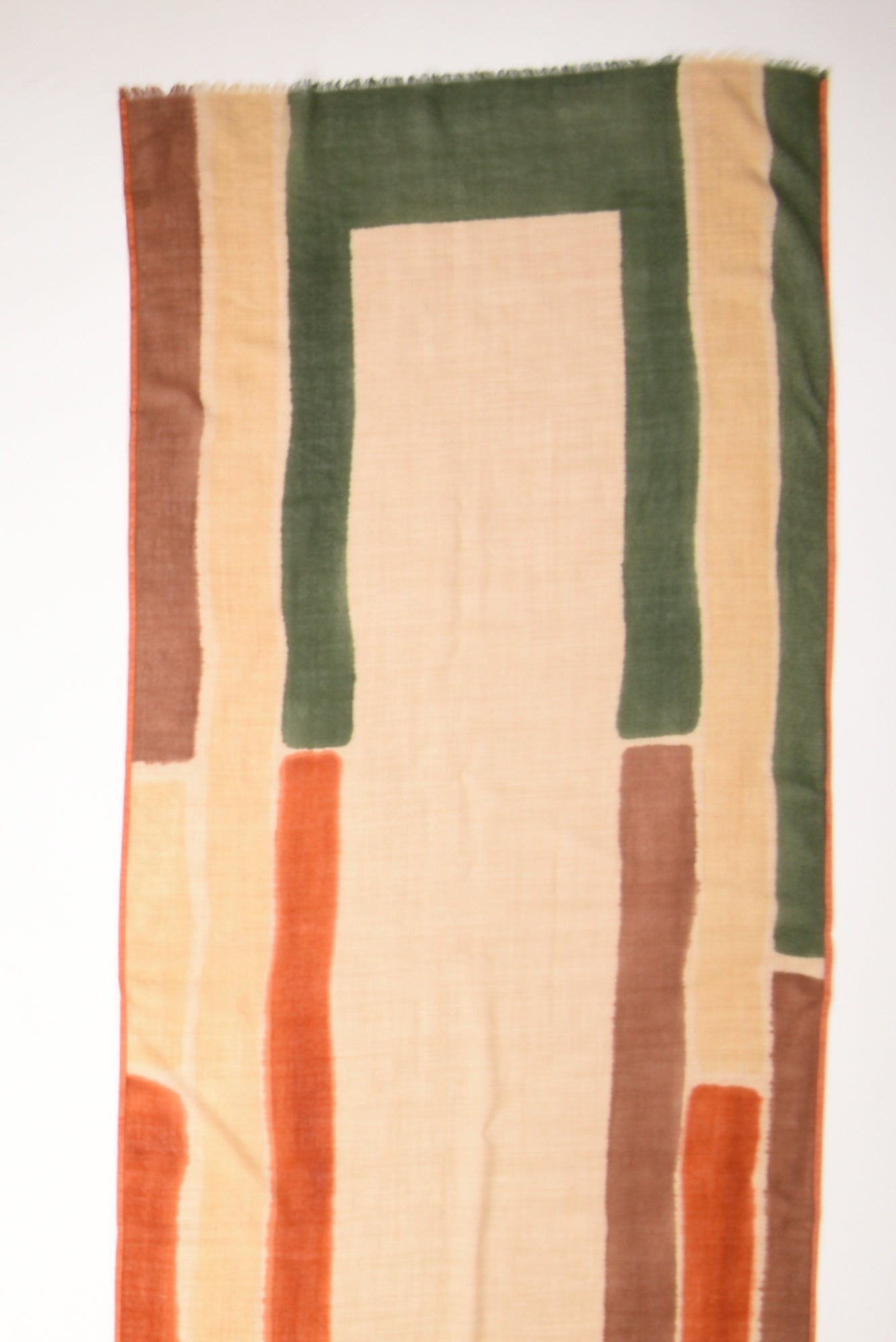 Sciarpa Righe Geometriche Contrasto Colore, Dimensioni 70x180, Composizione 100 Lana, Made In India