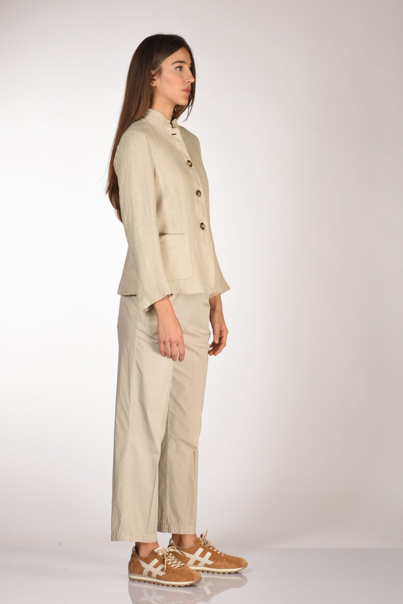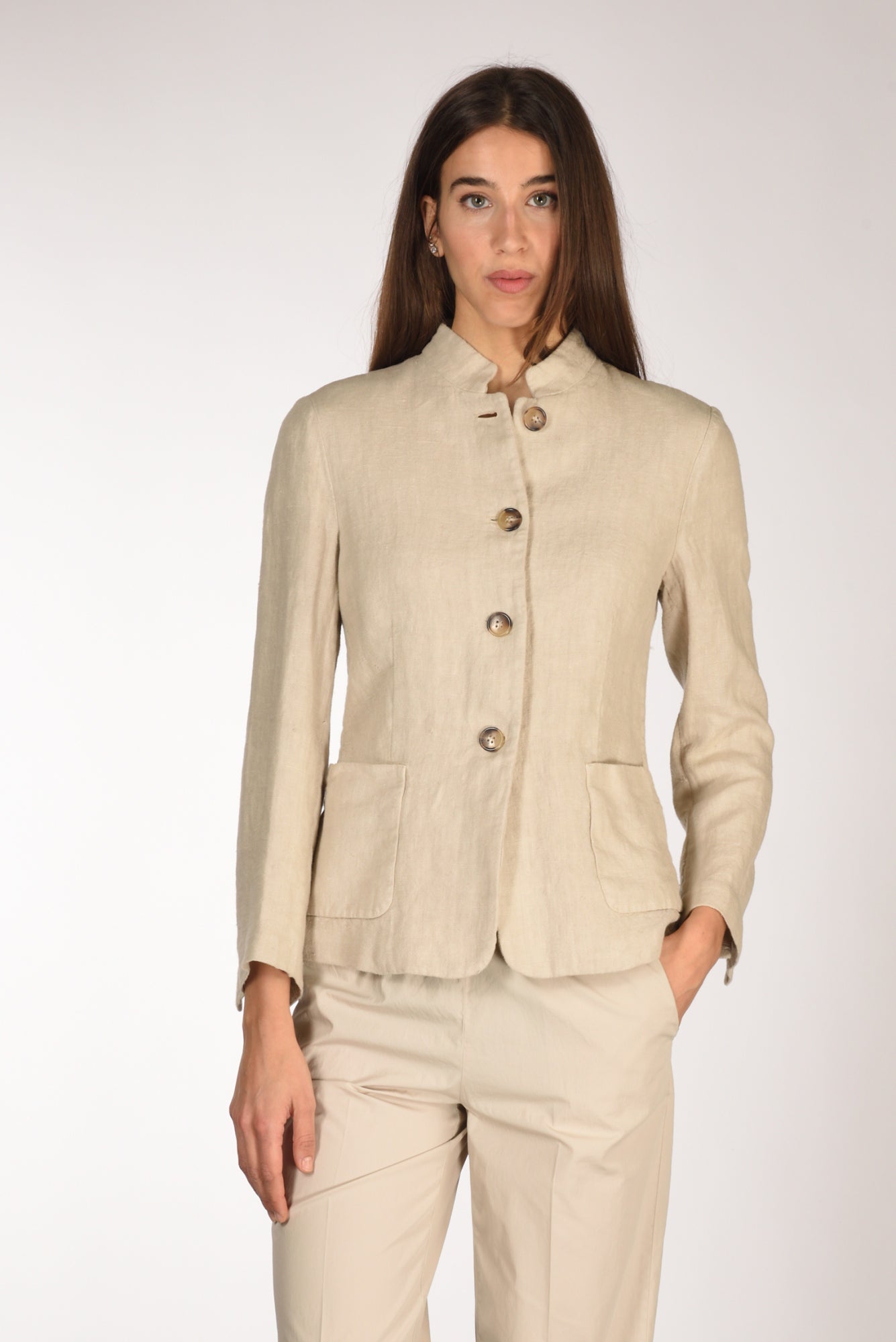 Giacca Mono Petto, Collo Alla Coreana, Chiusura Bottoni A Vista, Tasche Frontali Applicate, Vestibilita' Slim, Made In Italy, Composizione 100 Lino