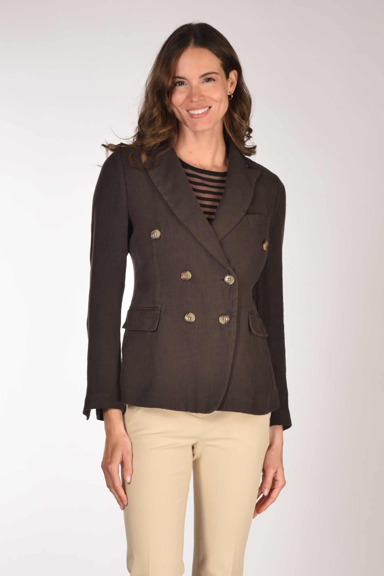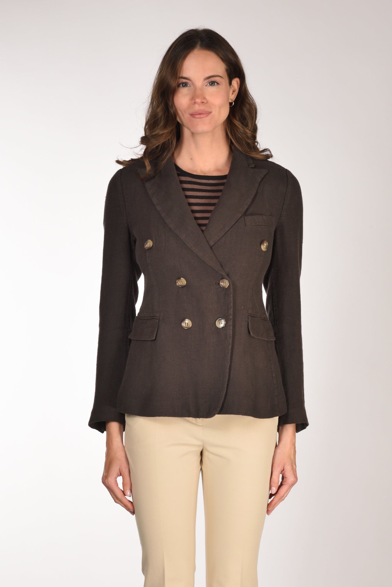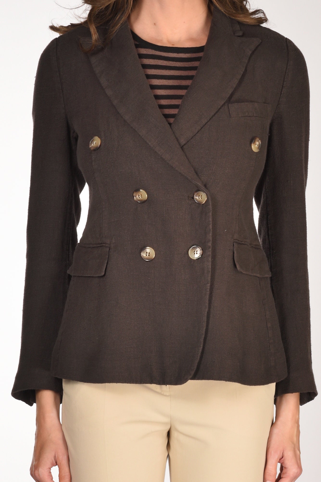 Giacca Doppio Petto, Rever A Lancia, Tasche Frontali Con Patta Battente, Manica Lunga Con Asole E Bottoni, Chiusura Bottoni A Vista, Doppio Spacco Posteriore, Vestibilita' Regular, Made In Italy, Composizione 100 Lino