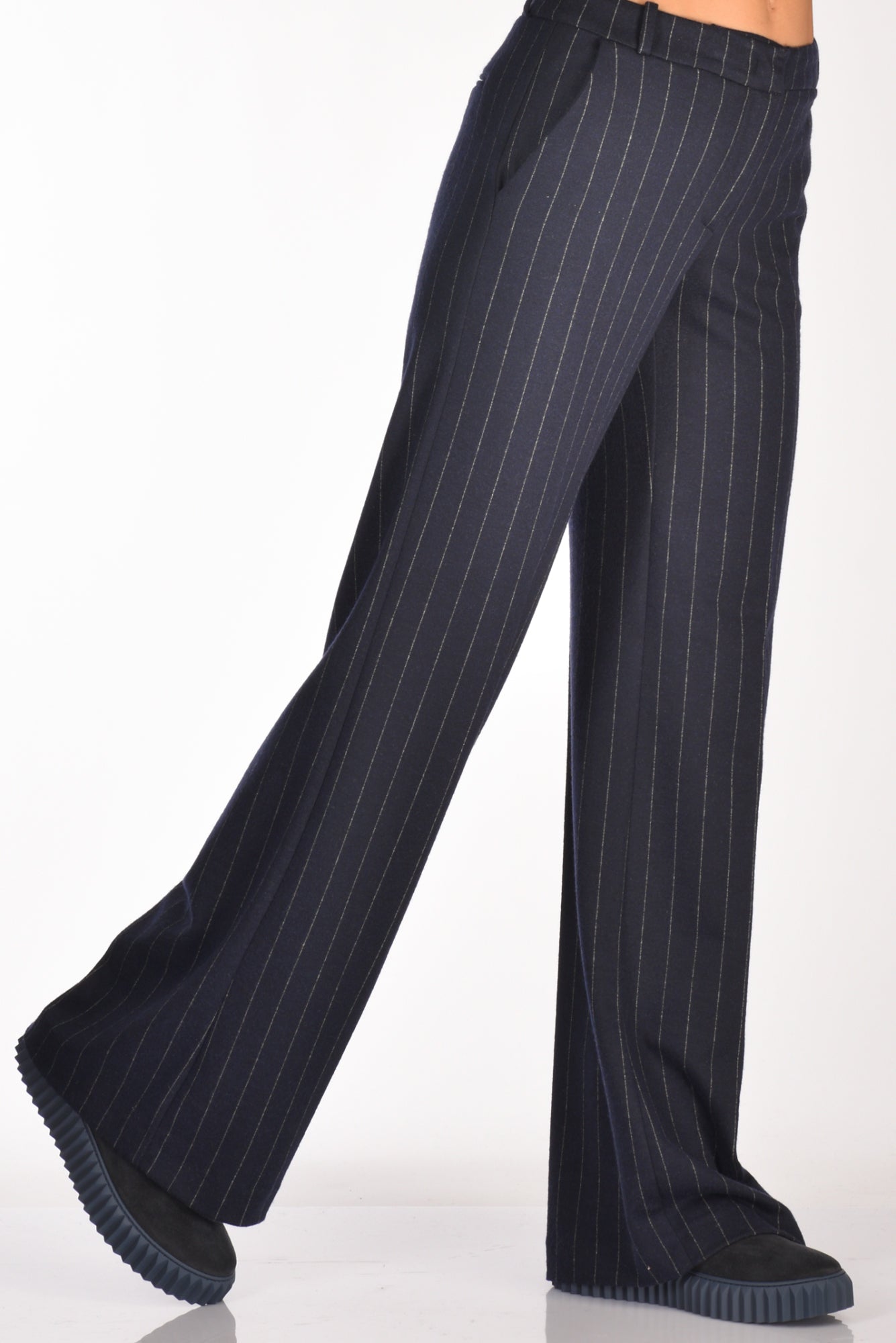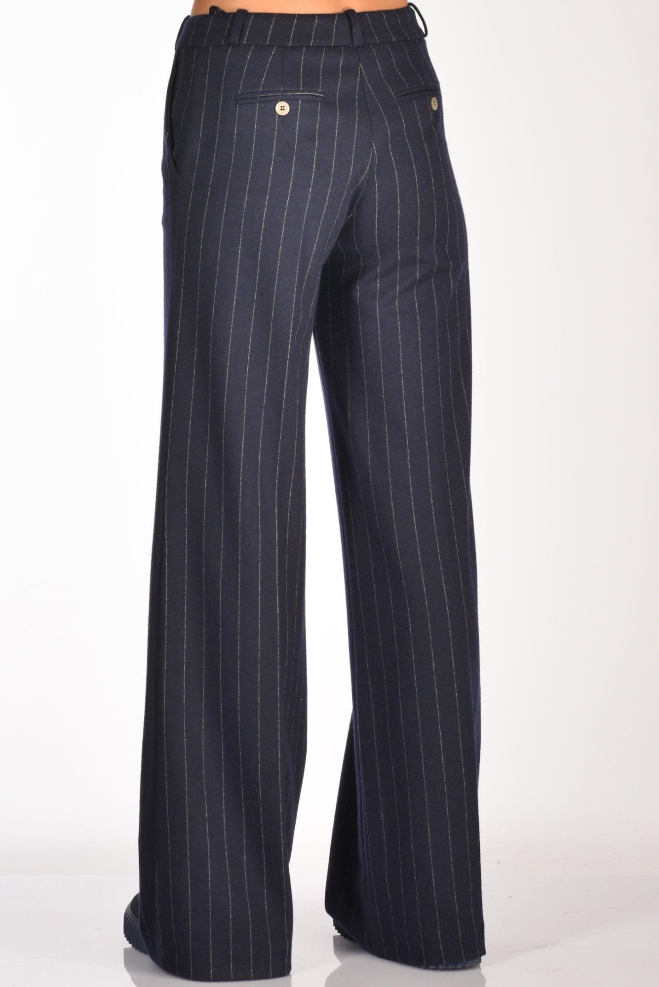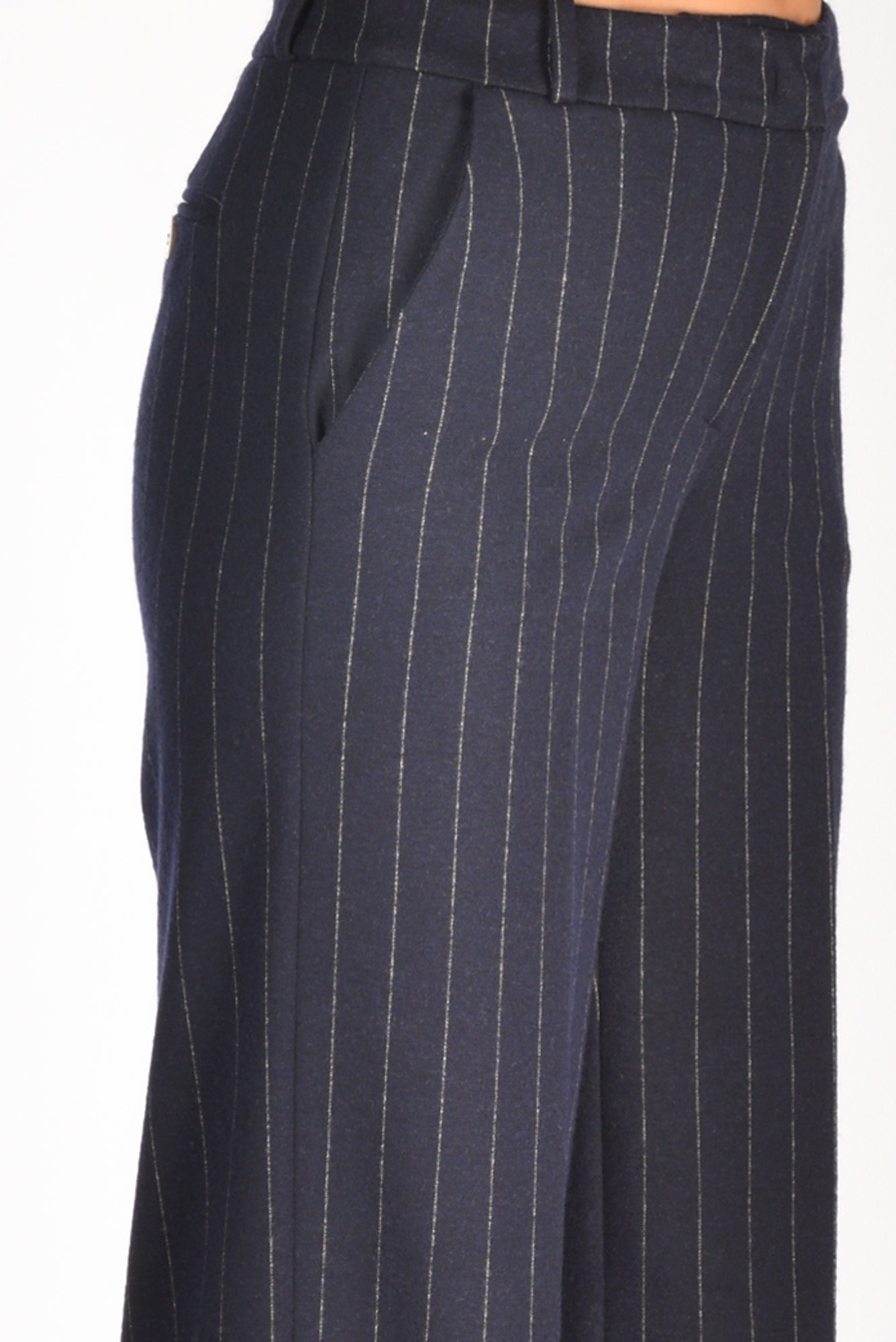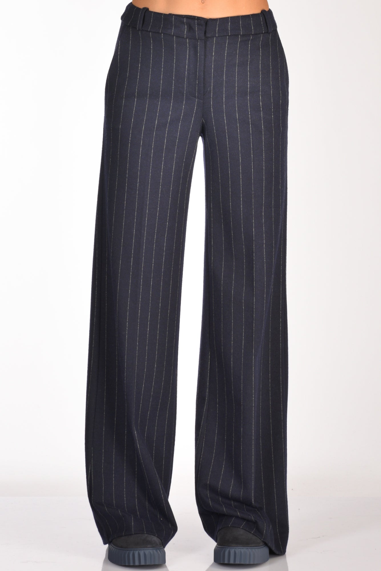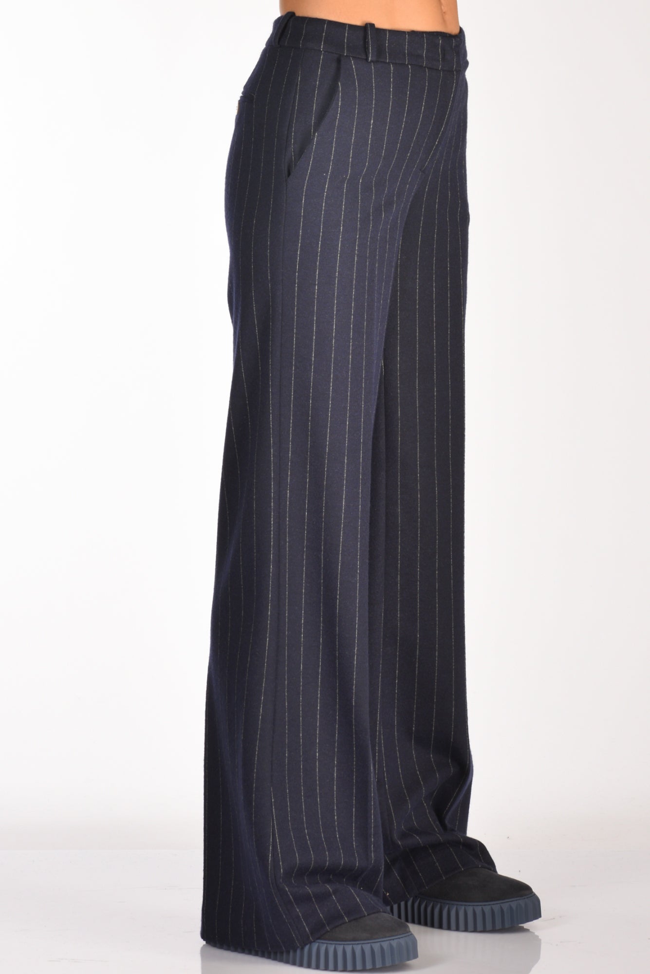 Pantaloni Vita Alta, Gamba Larga, Tasche Frontali Alla Francese E Posteriori A Filettp Con Bottone, Passanti In Vita, Chiusi Da Da Zip E Gancio Metallico Nascosti, Vestibilita' Regular, Composizione 50 Poliesere, 48 Viscosa, 2 Elastan, Made In Italy
