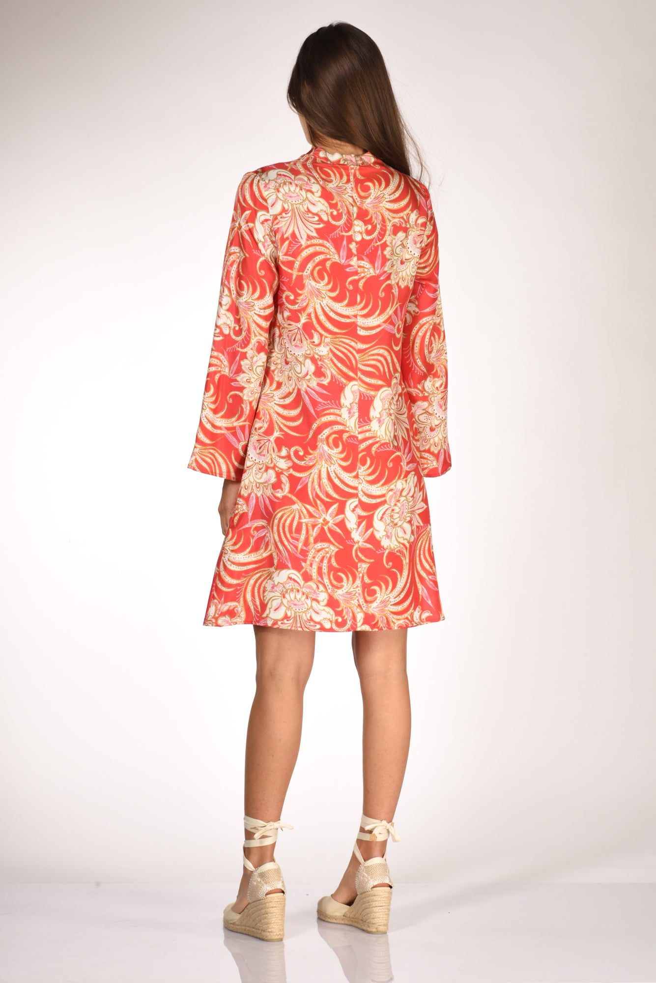 Abito Stampato, Maniche Lunghe A Tulipano, Scollo A V, Colletto Alla Coreana, Vestibilita' Regular, Composizione 100 Seta, Made In Romania