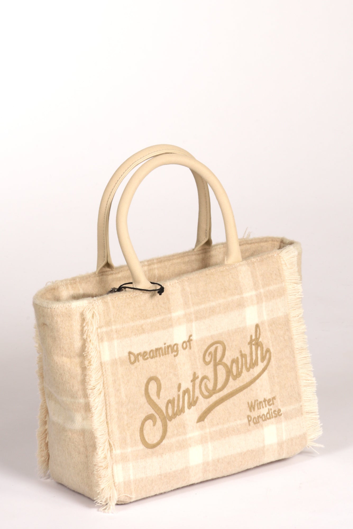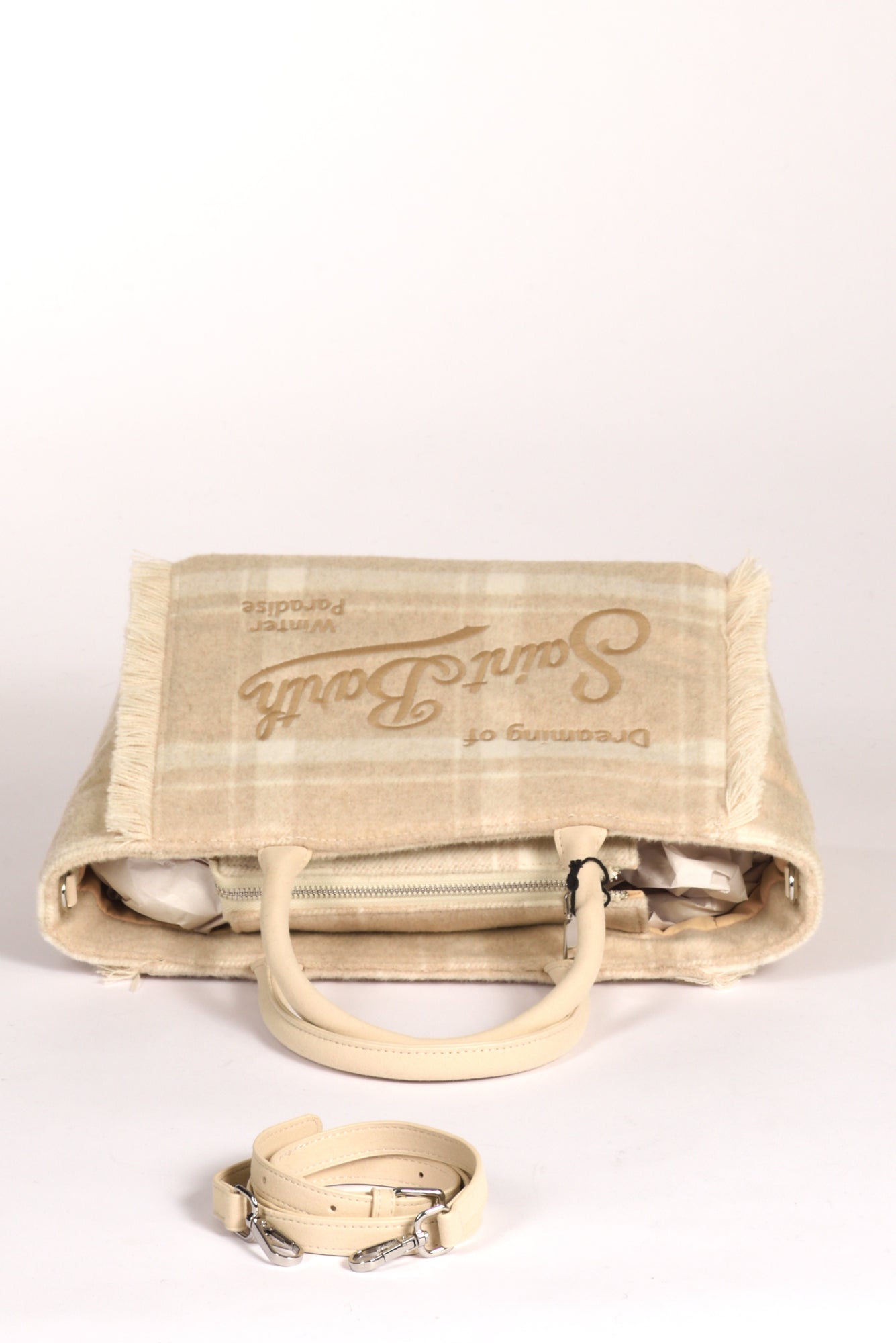 Borsa A Mano Realizzata In Tessuto, Decorata Da Frange, Logo Ricamato Ambo Lati A Contrasto Colore, Due Tasche Interne Di Cui Una Chiusa Da Zip, Chiusura Zip, Tracolla Removibile, Foderata, Made In China, Composizione 85 Poliestere 15 Lana, Fodera 100 Poliestere, Dimensioni 30x22x15 Cm