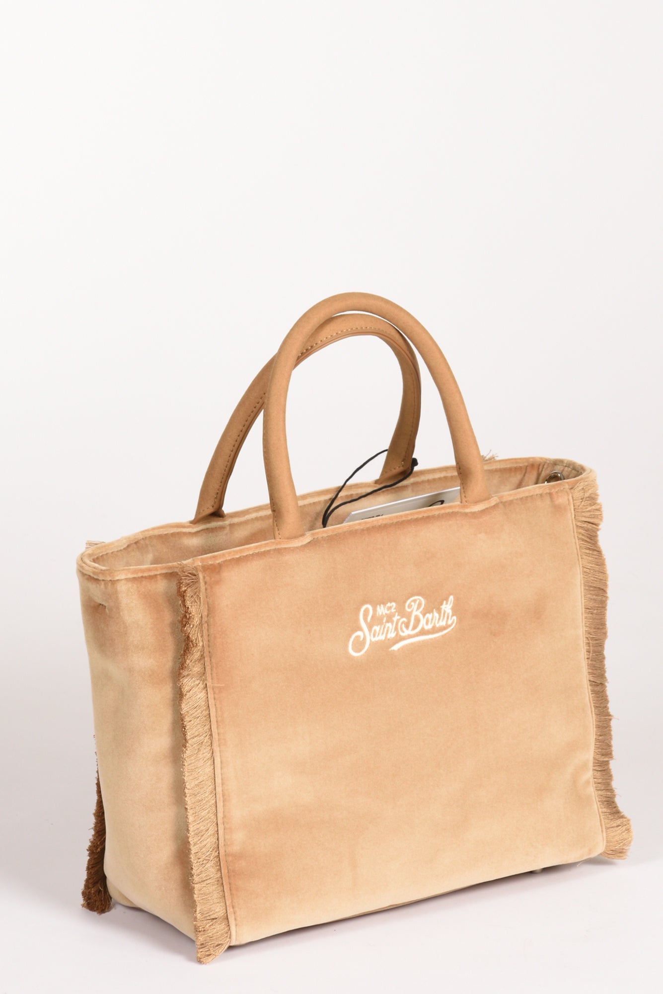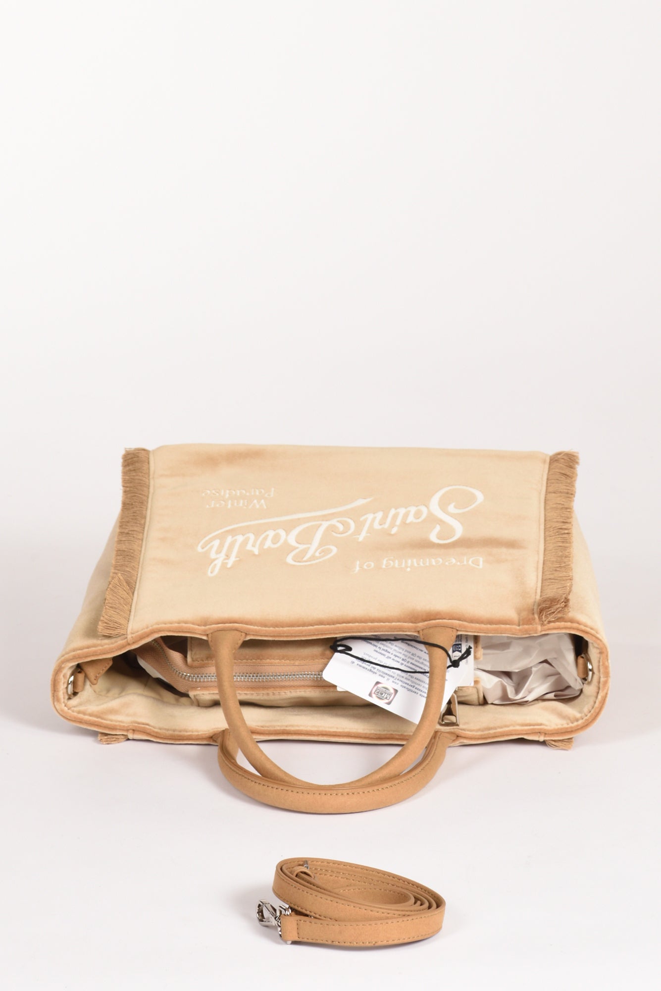 Borsa A Mano, Realizzata In Tessuto Effetto Velluto, Logo Ambo Lati, Due Tasche Interne Multiuso Di Cui Una Con Cerniera, Chiusa Da Zip, Motivo Di Frange Laterali, Tracolla Removibile, Composizione 100 Poliestere, Made In China, Dimensioni 27x23x11