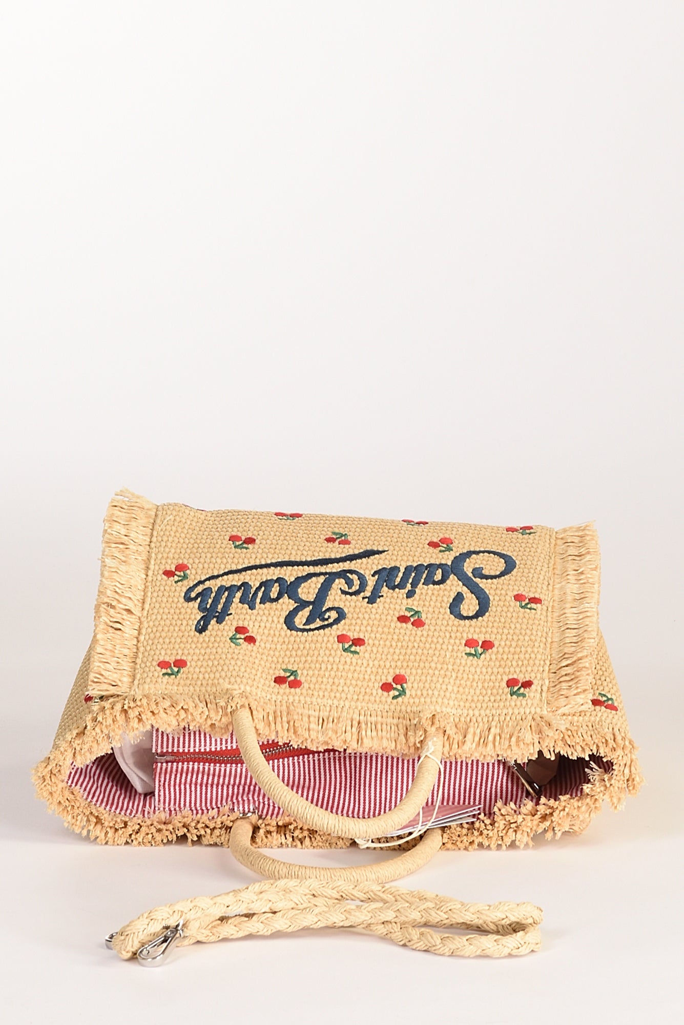 Shopper Effetto Paglia, Foderata Con Fondo Semi Rigido, Frange Laterali, Logo Ricamato Ambo I Lati, Chiusura Zip Centrale, Tasca Interna Multiuso Zippata, Tracolla Rimovibile, Dimensioni 30x28x14, Luce Manico 10 Cm, Made In Cina, Composizione 50 Cotone, 40 Polipropilene, 10 Polietilene, Fodera 100 Cotone