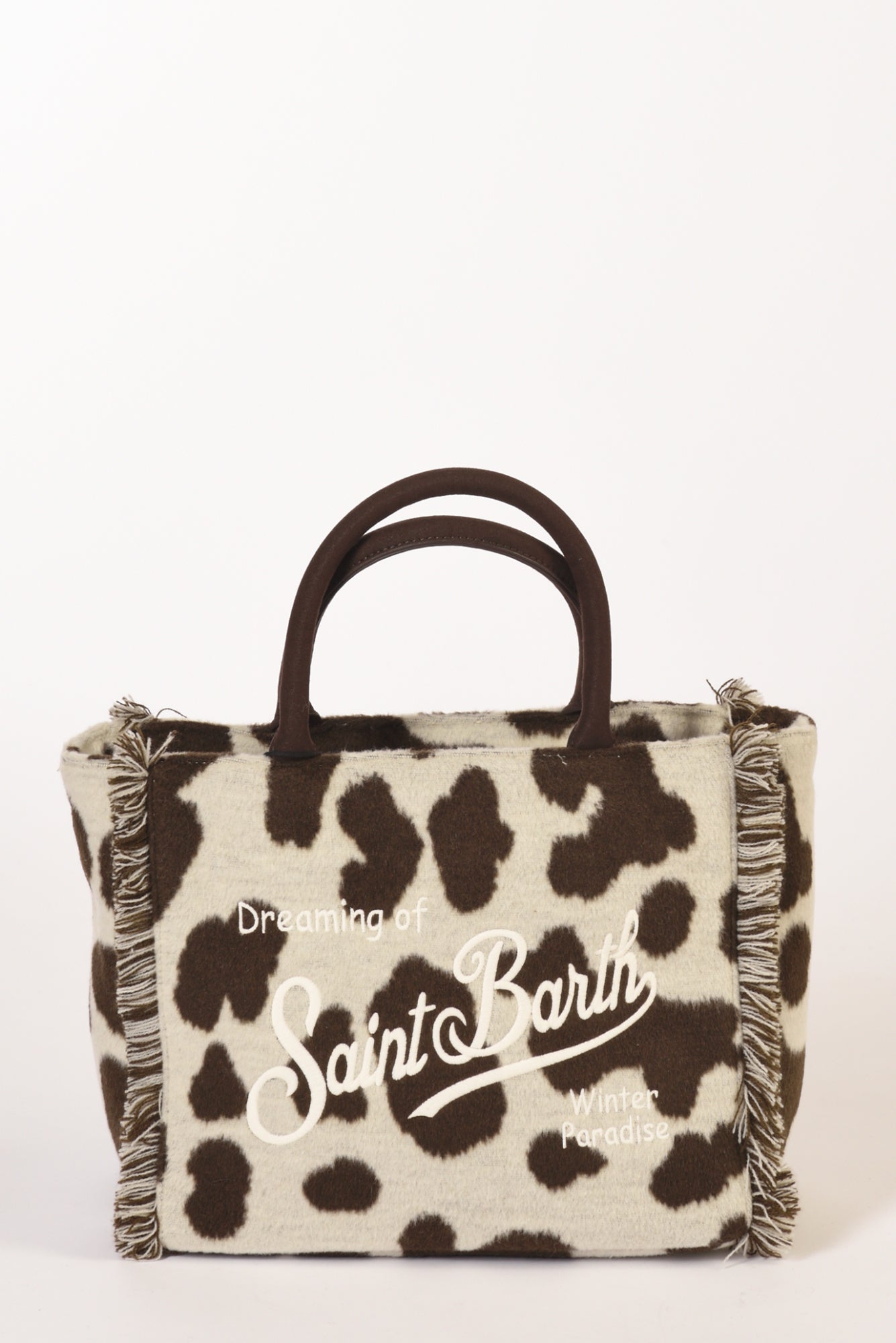 Borsa A Mano Realizzata In Tessuto, Decorata Da Frange, Logo Ricamato Ambo Lati A Contrasto Colore, Due Tasche Interne Di Cui Una Chiusa Da Zip, Chiusura Zip, Tracolla Removibile, Foderata, Made In China, Composizione 85 Poliestere 15 Lana, Fodera 100 Poliestere, Dimensioni 30x22x15 Cm