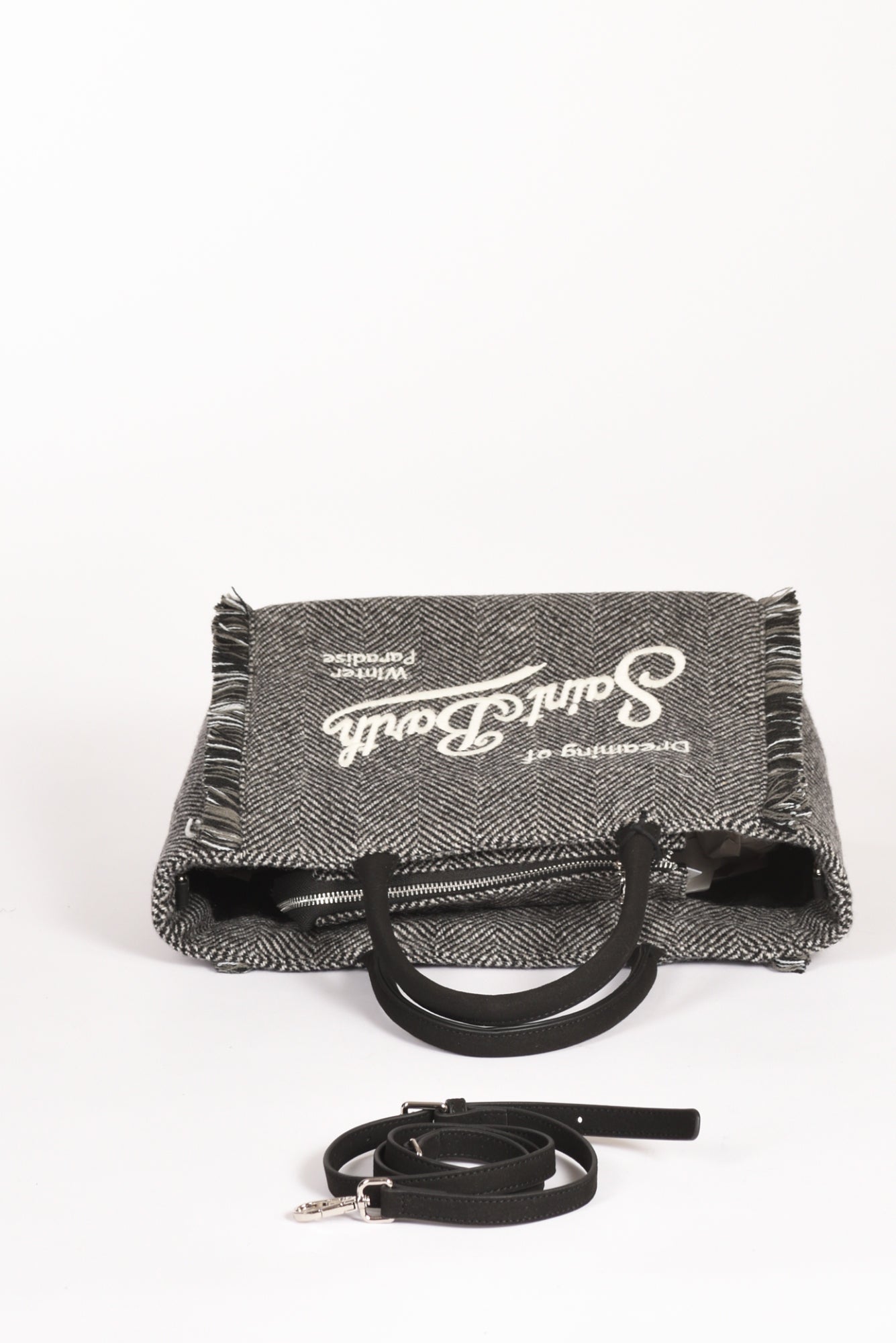 Borsa Effetto Lana, Foderata, Fondo Con Piedini, Frange Laterali, Logo Ambo I Lati, Chiusura Zip Centrale, Due Tasche Interne Multiuso Di Cui Una Zippata, Tracolla Removibile, Composizione 100 Poliestere, Made In China,