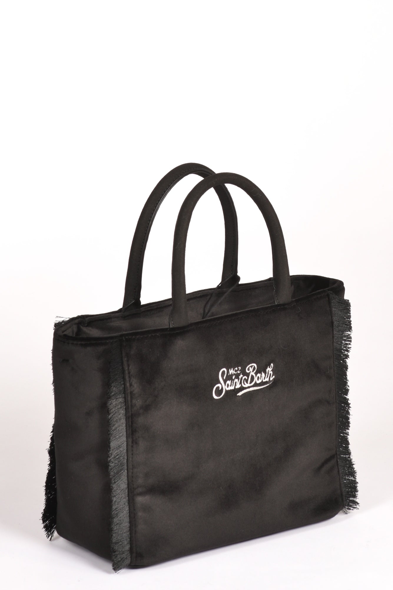 Borsa A Mano, Realizzata In Tessuto Effetto Velluto, Logo Ambo Lati, Due Tasche Interne Multiuso Di Cui Una Con Cerniera, Chiusa Da Zip, Motivo Di Frange Laterali, Tracolla Removibile, Composizione 100 Poliestere, Made In China, Dimensioni 27x23x11