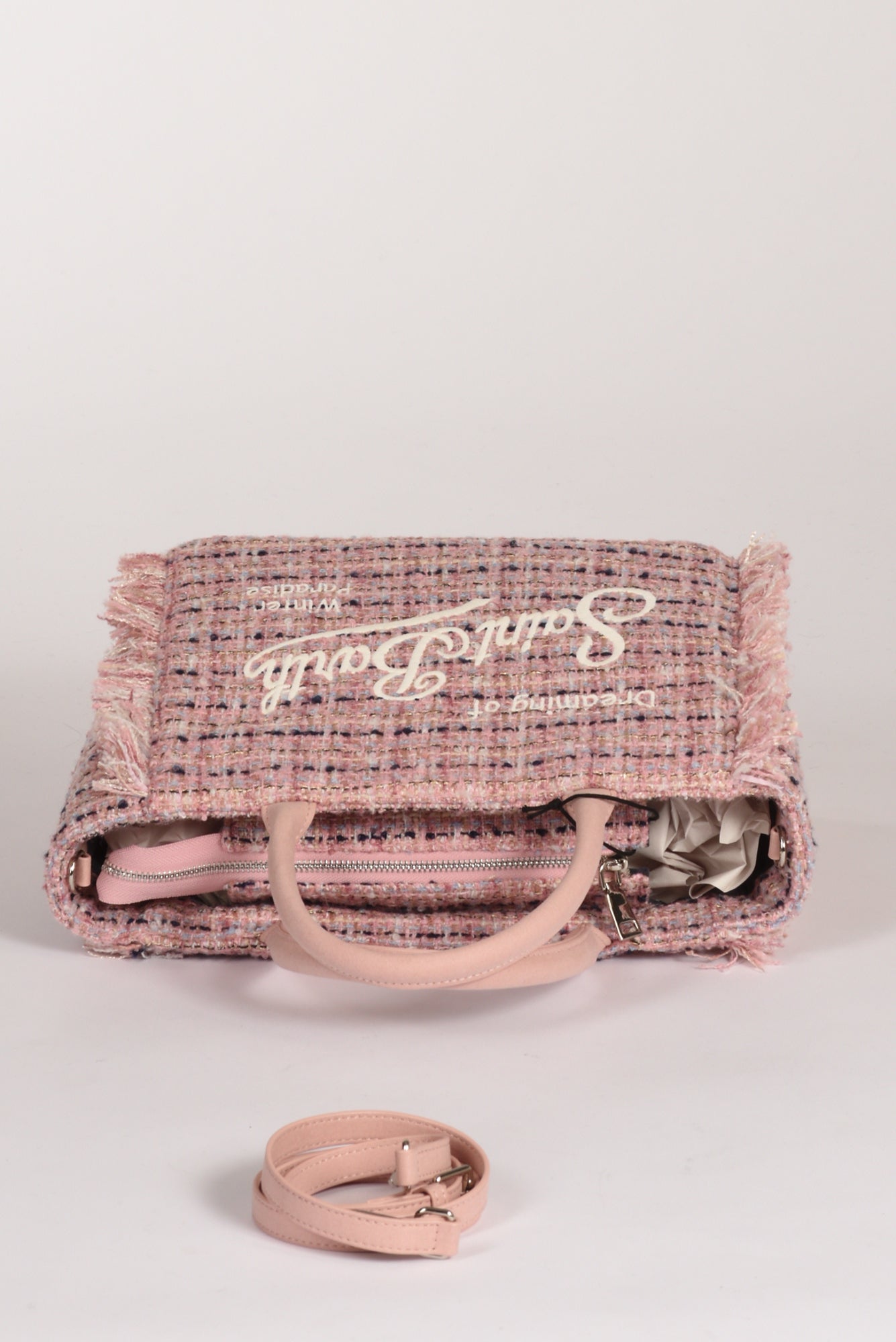 Borsa Effetto Tweed, Foderata, Fondo Con Piedini, Frange Laterali, Logo Ambo I Lati, Chiusura Zip Centrale, Due Tasche Interne Multiuso Di Cui Una Zippata, Tracolla Removibile, Composizione 100 Poliestere, Made In China,