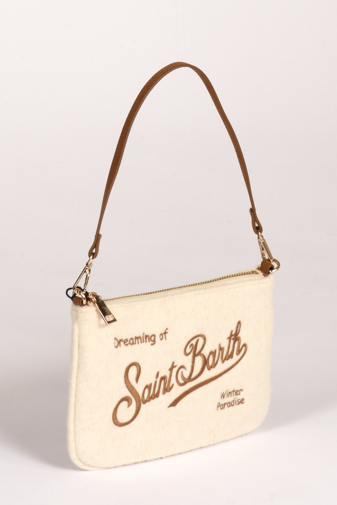 Piccola Borsa A Spalla Chiusa Da Zip, Dotata Di Spallaccio Rimovibile, Logo Ambo I Lati, Composizione 85 Poliestere, 15 Lana, Made In China, Dimensioni 22x17x1,5 Cm