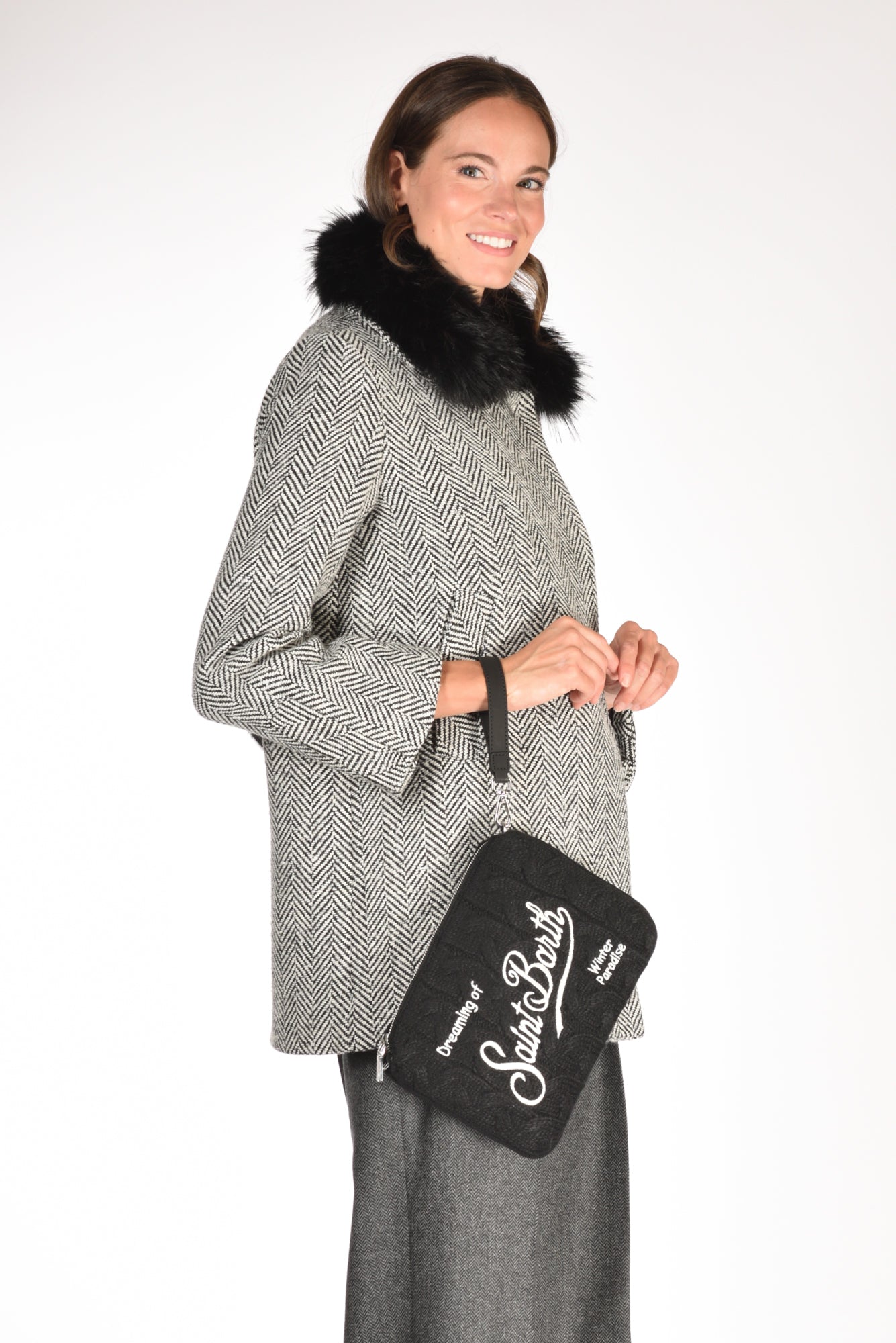 Pochette Grande Chiusa Da Zip, Lavorata A Trecce, Dotata Di Cinturino Da Polso E Tracolla In Eco Pelle Removibile, Foderata, Logo Ricamato Ambo Lati, Composizione 100 Acrilico, Made In China, Dimensione 20x28