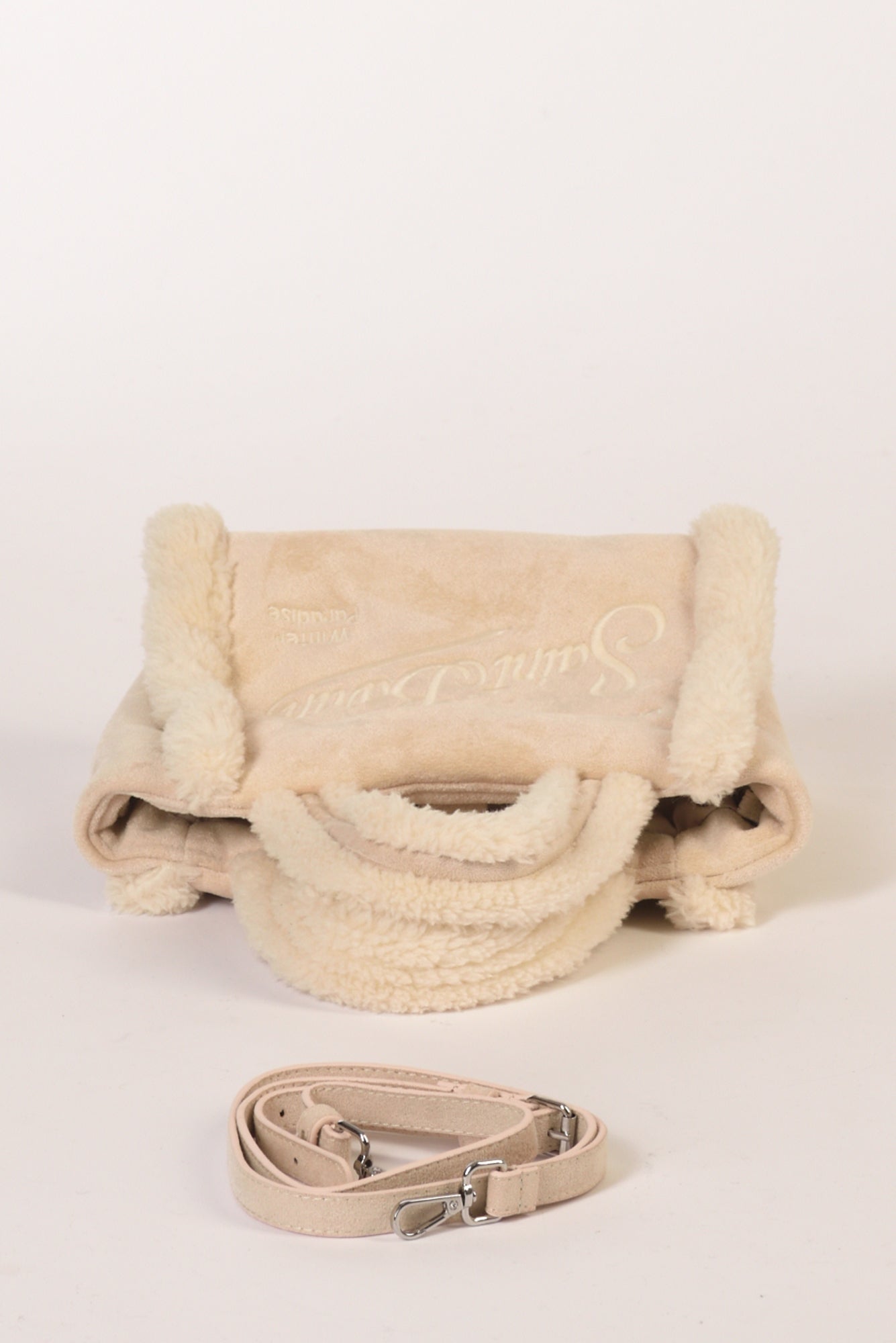 Borsa A Mano, Realizzata Effetto Montone, Logo Ambo Lati, Tasca Interna Con Cerniera, Chiusura Bottone A Pressione, Tracolla Removibile, Made In Cina, Composizione 100 Poliestere, Made In China, Dimensioni 18x16 X9 Cm