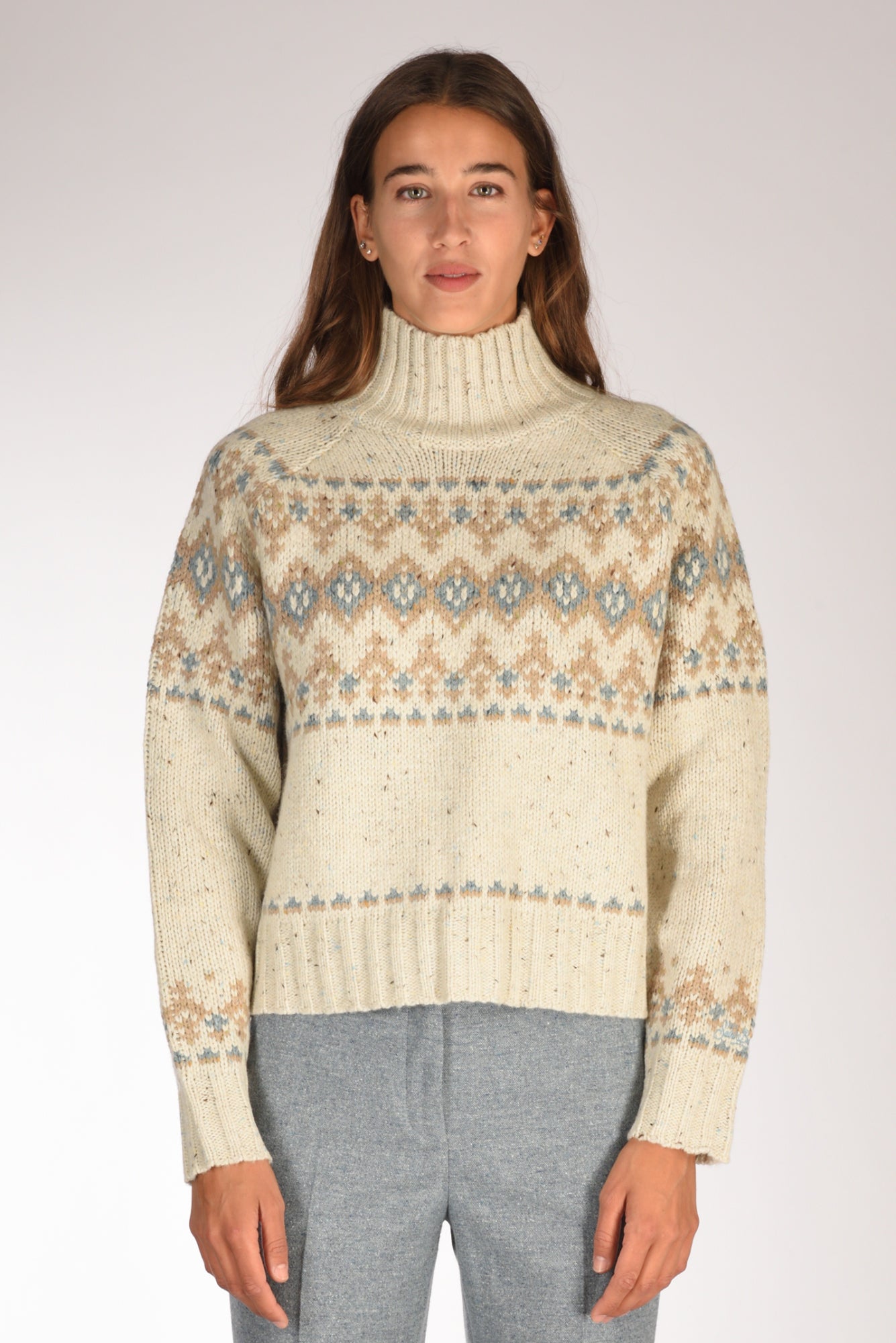 Maglia Collo Alto, Maniche Raglan, Ricamo Stile Norvegese, Vestibilita' Regular, Composizione 50 Lana, 50 Acrilico, Made In Chna