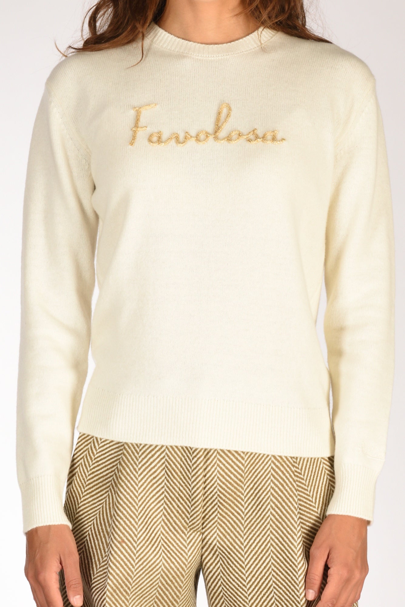 Maglia Girocollo, Ricamo Frontale Contrasto Colore, Vestibilita' Regular, Composizione 45 Lana, 30 Viscosa,15 Poliammidica,10 Cachemire, Made In Italy