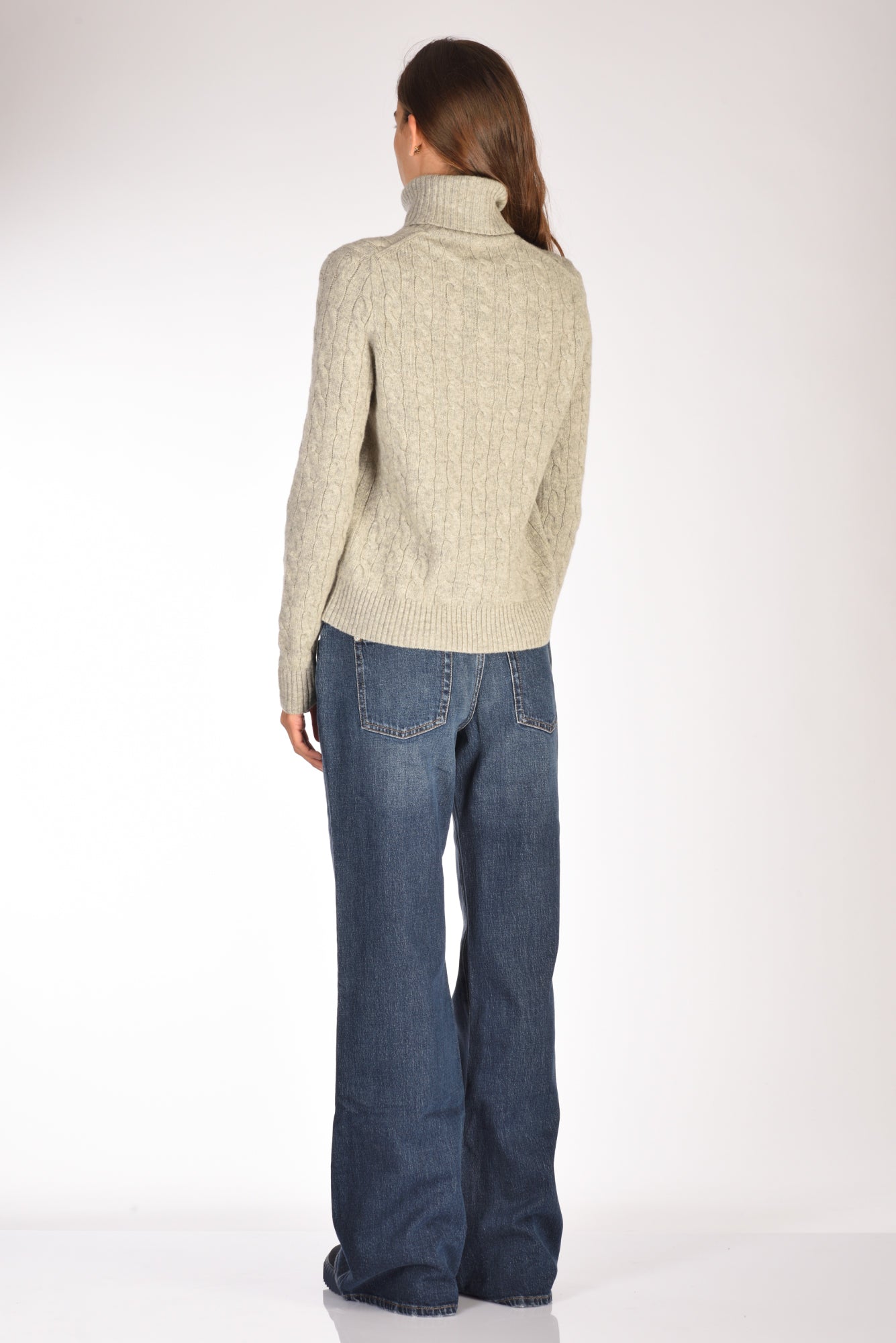 Maglia Collo Alto, Manica Lunga, Lavorazione Trecce, Collo, Polsi E Bordi A Coste, Logo Frontale Ricamato, Vestibilita' Slim, Made In Turchia, Composizione 90 Lana 10 Cachemire