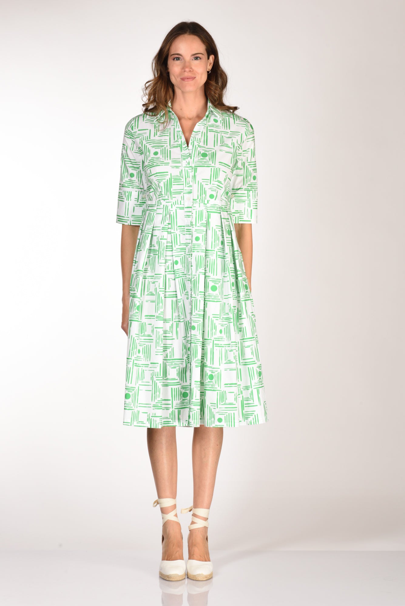 Abito Chemisier, Collo A Camicia, Scollo A V, Mezza Manica Con Alto Polsino Chiuso Da Bottone, Gonna A Pieghe Piatte, Tasche Laterali Inserite, Chiuso Da Bottoni A Vista, Vestibilita' Regular, Composizione 100 Cotone, Made In Tunisia