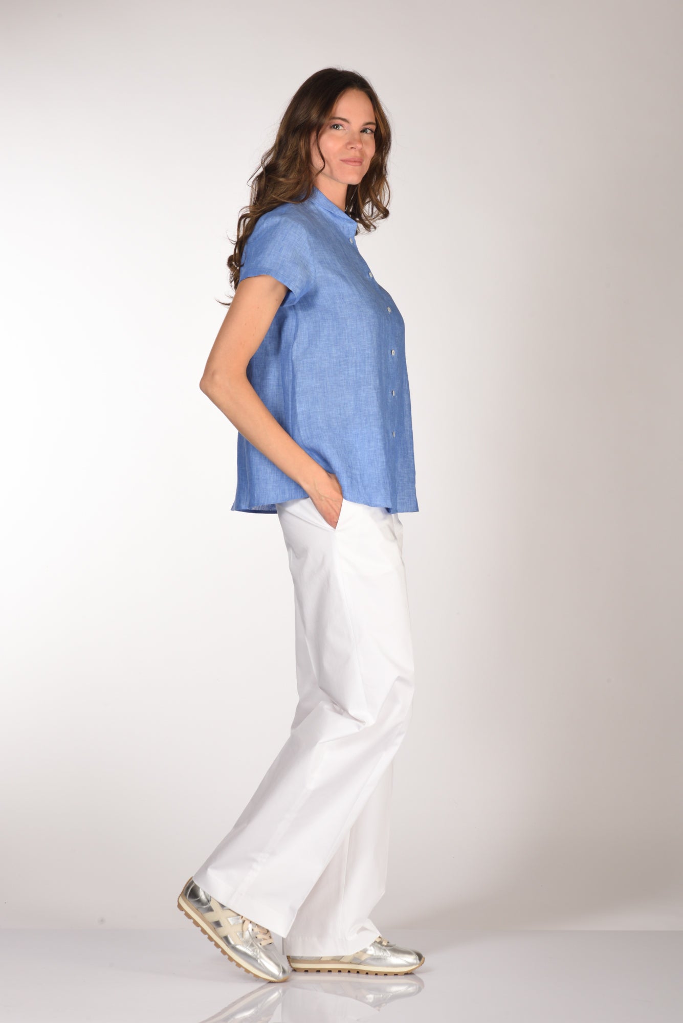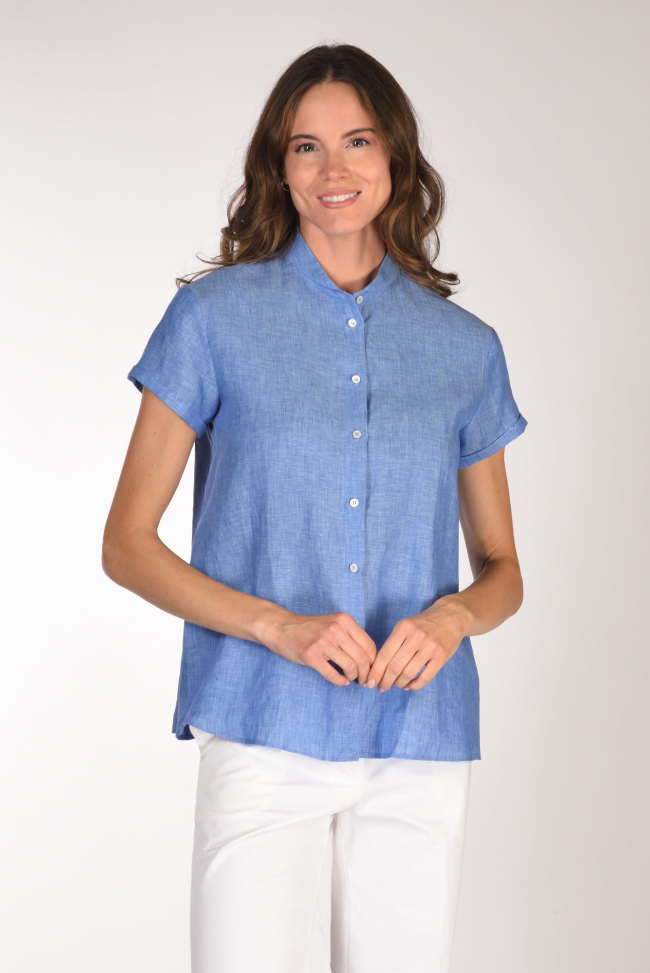 Camicia Mezza Manica Con Piccolo Collo Stondato, Linea Boxy, Chiusura Bottoni A Vista, Vestibilita' Regular, Made In Tunisia, Composizione 100 Lino