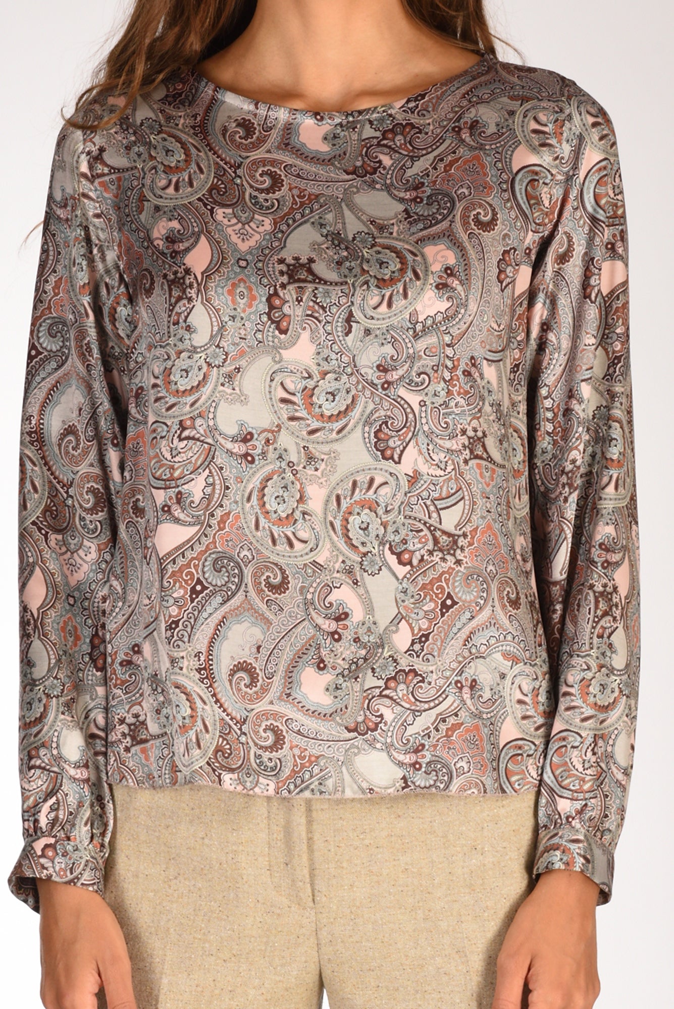 Camicia Stampata Ampio Collo A Giro, Polsino, Vestibilita' Relaxed, Composizione 66 Viscosa, 34 Seta, Made In Tunisia